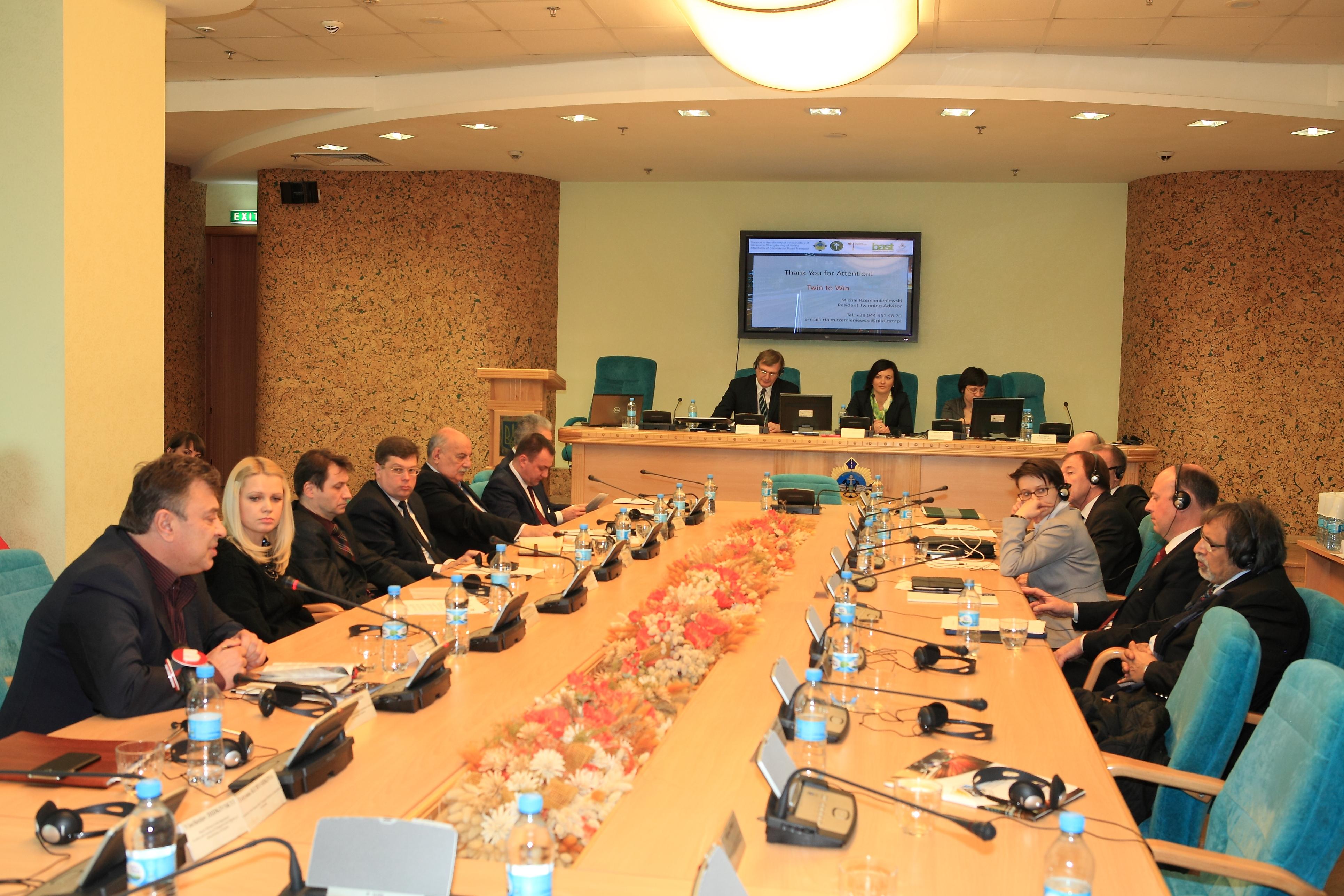 31 marca w Kijowie odbył się "kick off", podczas którego wszystkie strony Projektu zaprezentowały priorytety oraz harmonogram działań a także podsumowały wyniki pracy po pierwszych trzech miesiącach działalności ekspertów. W spotkaniu uczestniczyli m.in. Pani Oksana Reiter, Podsekretarz Stanu w Ukraińskim Ministerstwie Infrastruktury, pełniąca zarazem funkcję Lidera Projektu po stronie Ukraińskiej, Pan Michał Rzemieniewski, pełniący funkcję RTA (Resident Twinning Adviser) w projekcie, Pan Robert Maiworm (Vice Prezydent Niemieckiego BAG), Pan Darius Sadaunykas (Przedstawiciel Litewskiej Inspekcji Transportu Drogowego). Lidera projektu, Główny Inspektorat Transportu Drogowego reprezentowali Pan Cezary Bańka (Dyrektor Generalny ITD) oraz Pani Joanna Rutkowska (Dyrektor Gabinetu Głównego Inspektora Transportu Drogowego). Ukraińska Minister wielokrotnie w swoim wystąpieniu podkreślała fakt, iż strona Ukraińska jest bardzo zadowolona że to właśnie Polska, Niemcy i Litwa tworzą konsorcjum, które pomaga dostosowywać oraz tworzyć prawo odpowiadające standardom europejskim.