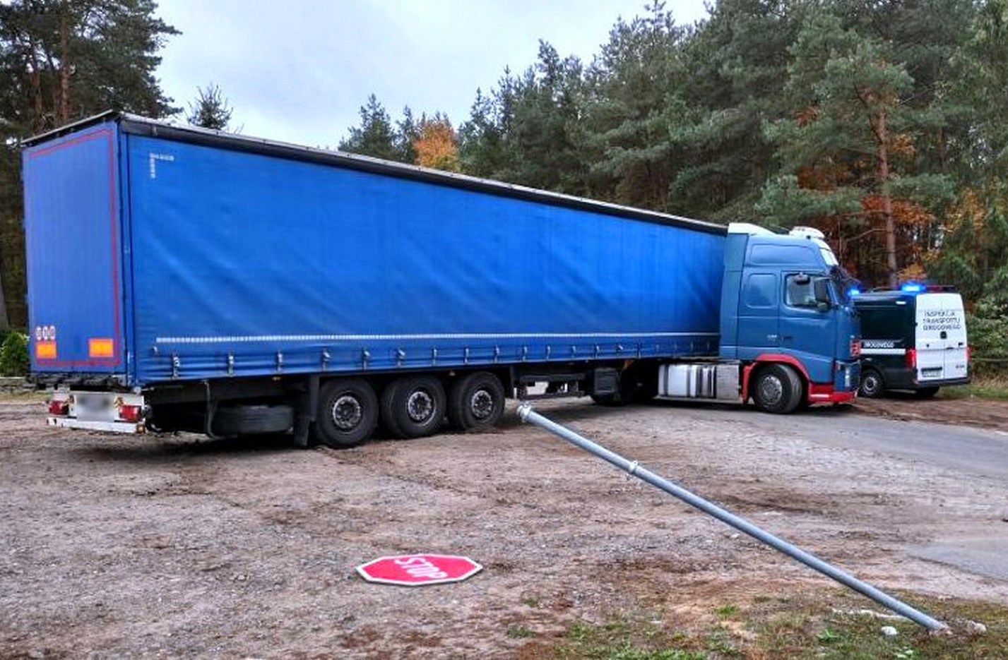Inspektorzy Inspekcji Transportu Drogowego z Piły zwrócili uwagę na ciężarówkę, której kierowca zatrzymał się w zatoce autobusowej. Mężczyzna na widok inspektorów uciekł na pobliski parking, uszkadzając znak drogowy. Okazało się, że wpadł w panikę, bo w pojeździe chwilę wcześniej zainstalował niedozwolony magnes, fałszujący czas pracy.