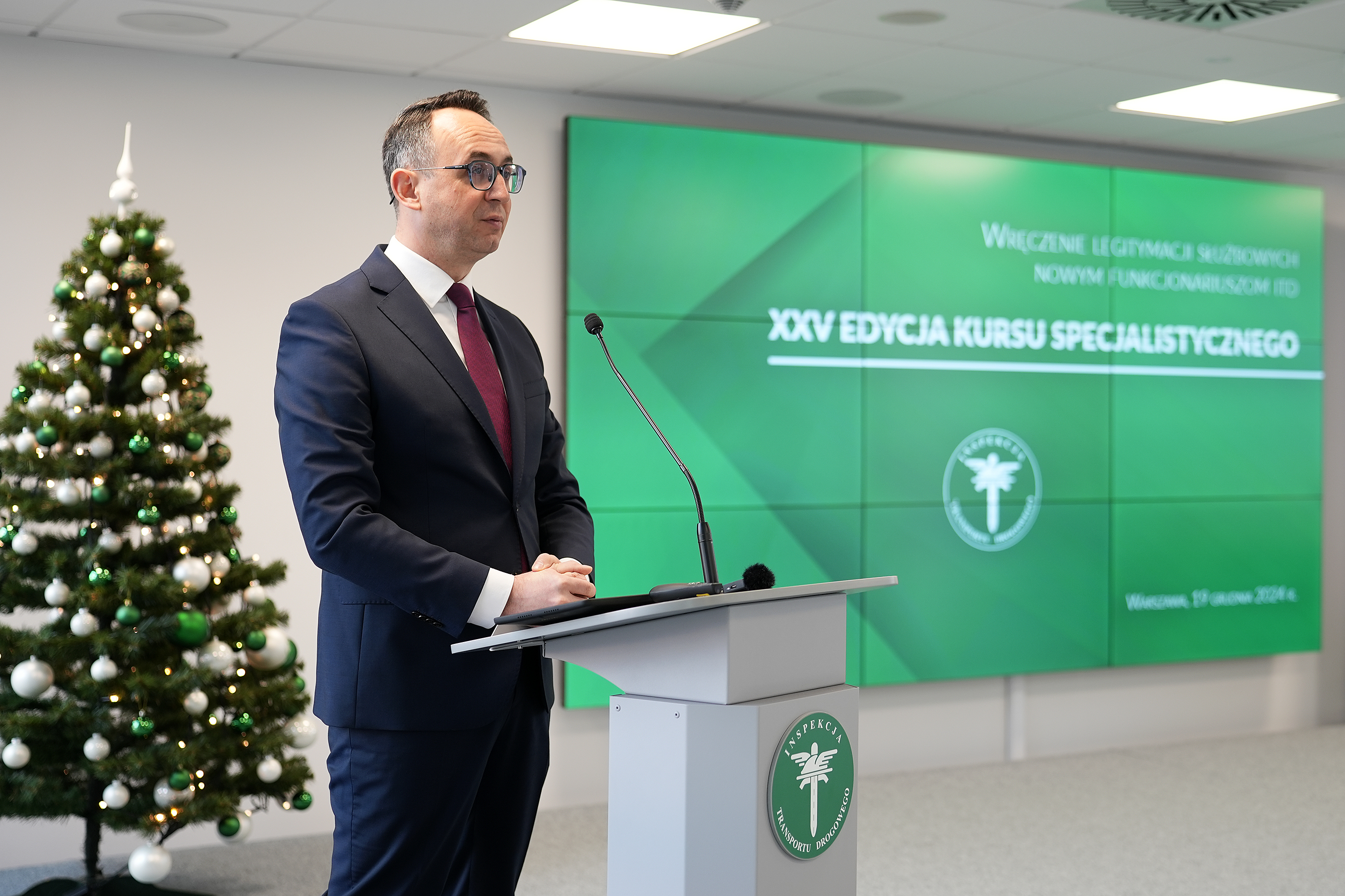 35 nowych funkcjonariuszy, którzy ukończyli XXV edycję kursu specjalistycznego dla inspektorów transportu drogowego, otrzymało legitymacje służbowe. W uroczystości wziął udział Minister Infrastruktury, co jest powrotem do tradycji sprzed lat. To szczególne wyróżnienie dla nowych inspektorów, którzy ukończyli intensywne, sześciomiesięczne szkolenie zakończone trudnym i wymagającym egzaminem. Wydarzenie było również okazją do podziękowania pracownikom i inspektorom ITD za wytężoną pracę.