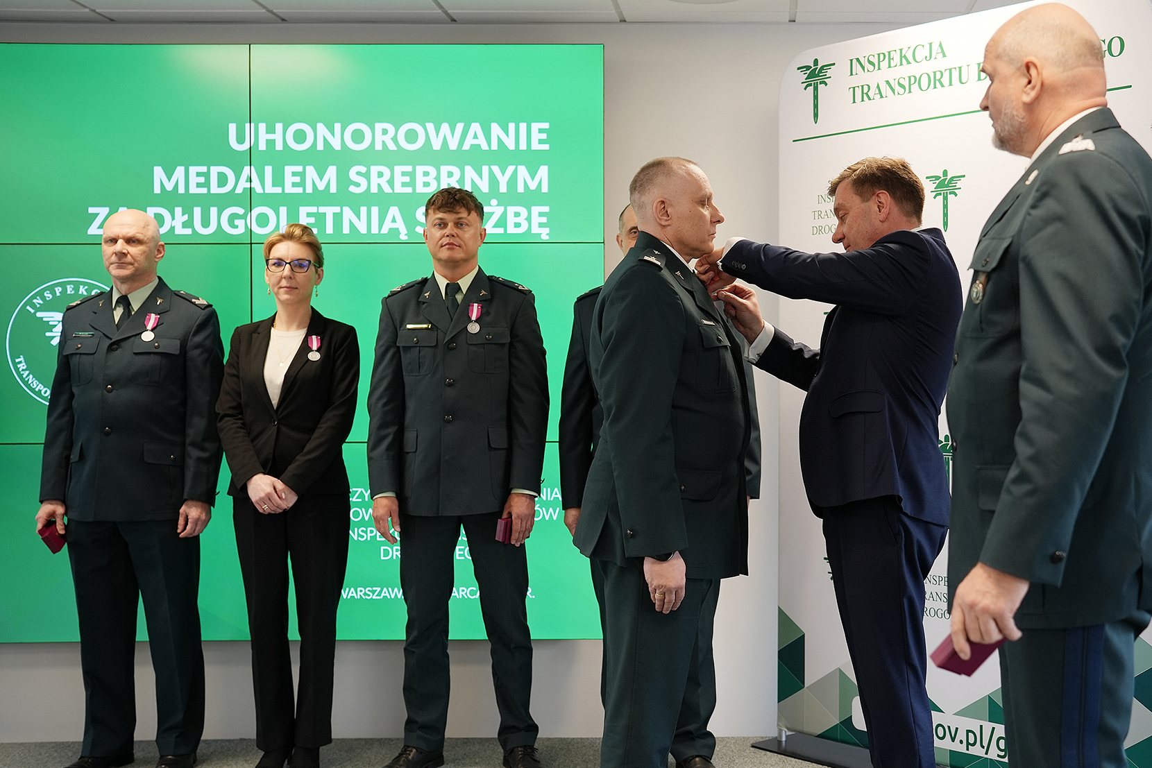 We wtorek (18 marca), w siedzibie Głównego Inspektoratu Transportu Drogowego, odbyła się uroczystość wręczenia odznaczeń państwowych oraz resortowych pracownikom i inspektorom Inspekcji Transportu Drogowego. Przyznane odznaczenia to wyraz uznania za zaangażowanie i profesjonalizm oraz wieloletnią, sumienną pracę na rzecz bezpieczeństwa w transporcie i ruchu drogowym.