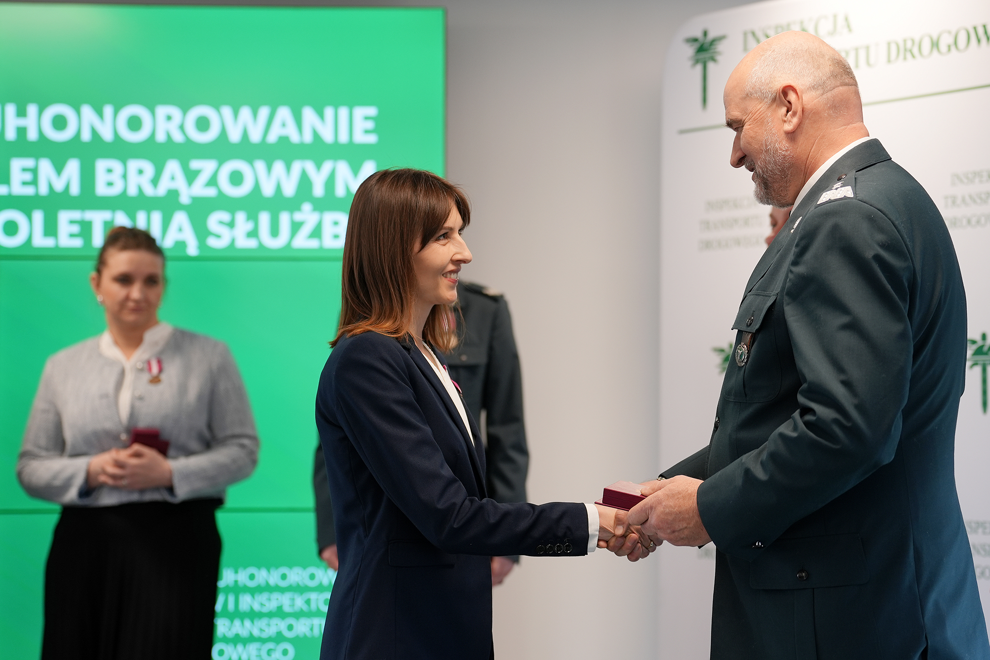 Natomiast Wiceminister Infrastruktury Stanisław Bukowiec wręczył 28 pracownikom i inspektorom odznakę honorową „Zasłużony dla transportu Rzeczypospolitej Polskiej”, nadaną przez Ministra Infrastruktury. Wyróżnienie to jest podziękowaniem za trud włożony m.in. w kształtowanie i egzekwowanie przestrzegania zasad uczciwej konkurencji na rynku transportowym. Dodatkowo, jeden z inspektorów z WITD został wyróżniony odznaką honorową za „Zasługi dla Ochrony Środowiska i Klimatu”, przyznaną przez Minister Klimatu i Środowiska.