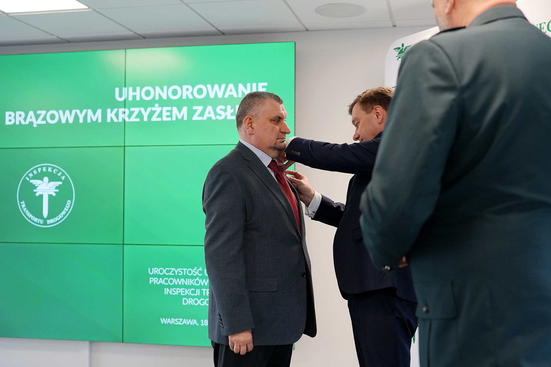 Brązowym Krzyżem Zasługi oraz Medalami za Długoletnią Służbę, a także odznakami „Zasłużony dla transportu Rzeczypospolitej Polskiej” uhonorowani zostali pracownicy i inspektorzy Inspekcji Transportu Drogowego. Odznaczenia Prezydenta Rzeczypospolitej Polskiej wręczył Doradca Prezydenta RP Krzysztof Wacławek, natomiast odznaki honorowe nadane przez Ministra Infrastruktury przekazał wiceminister Stanisław Bukowiec. W ceremonii wręczenia odznaczeń wziął udział również Główny Inspektor Transportu Drogowego Artur Czapiewski.