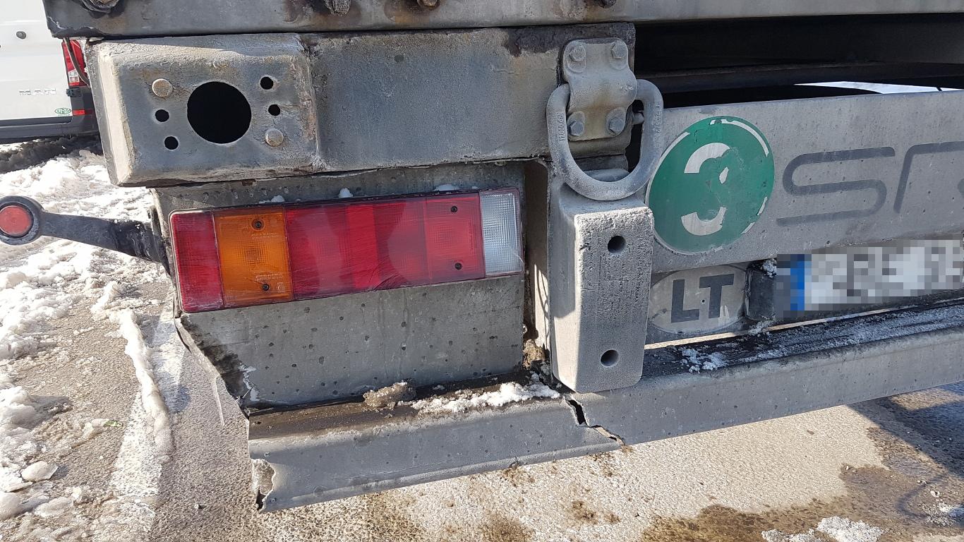 Stan techniczny naczepy budził spore zastrzeżenia. Uszkodzona była belka i tylna lampa zespolona naczepy. Belka i lampa trzymały się na tzw. trytytkach, czyli plastikowych opaskach zaciskowych. Ujawnione wady zakwalifikowano jako niebezpieczne.