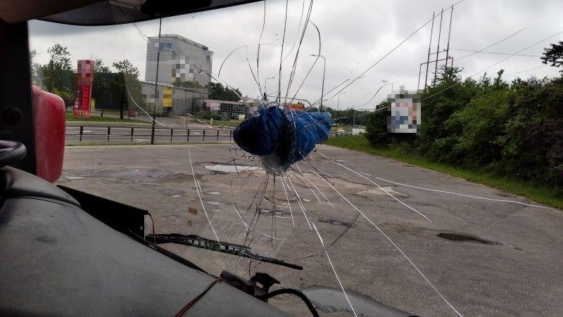 Wybita i zasłonięta workiem szyba przednia była powodem kontroli ciągnika siodłowego, zatrzymanego przez patrol z Głównego Inspektoratu Transportu Drogowego. Konieczna była również interwencja policji. Kierująca ciężarówką korzystała z magnesu. Kobieta rejestrowała odpoczynek zamiast jazdy, co też powodowało zatrzymanie drogomierza pojazdu.