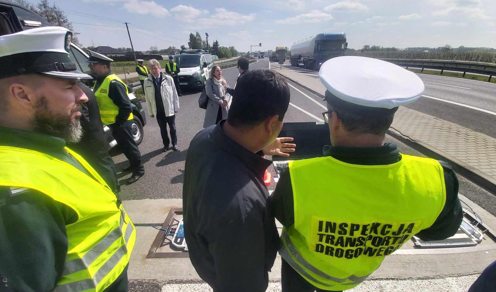 We wtorek (23 kwietnia), w punkcie kontrolnym przy ekspresowej „siódemce” koło Grójca, inspektorzy Wojewódzkiego Inspektoratu Transportu Drogowego i Głównego Inspektoratu Transportu Drogowego gościli zagraniczną delegację z Azji Środkowej. Przedstawiciele Inspekcji Nadzoru Transportu Uzbekistanu (Transport Supervision Inspectorate) wspólnie z Ministrem Transportu przyglądali się codziennej pracy funkcjonariuszy. Poznali m.in. sposób działania systemu preselekcji wagowej oraz procedurę ważenia pojazdów ciężarowych na inspekcyjnych wagach. Funkcjonariusze pokazali też delegatom procedury związane z analizą danych cyfrowych z tachografu i karty kierowcy. Gości zainteresowały m.in. parametry techniczne zatok do kontroli pojazdów i system e-TOLL stworzony do poboru opłaty elektronicznej za przejazd po wybranych odcinkach autostrad, dróg ekspresowych i krajowych w Polsce.