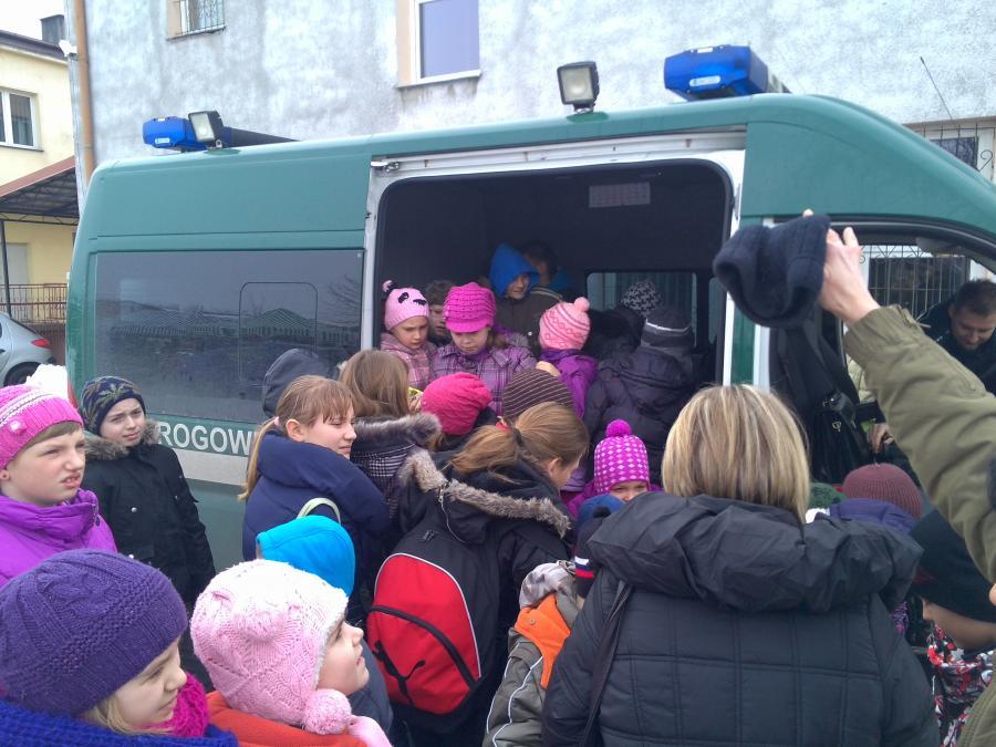 W dniu 27 lutego z inicjatywy Pana Artura Bal, Warmińsko - Mazurskiego Wojewódzkiego Inspektora Transportu Drogowego oraz przy pomocy Zastępcy Wójta Gminy Dźwierzuty odbyły się warsztaty dla uczniów Szkoły Podstawowej w Kałęczynie. Spotkanie z dziećmi zostało zainicjowane w skutek nieszczęśliwego wypadku drogowego gimbusa, do jakiego doszło na początku lutego 2013 roku na terenie gminy Dźwierzuty. Tematyka zajęć związana była z szeroko rozumianym bezpieczeństwem dzieci na drogach. W ramach przeprowadzonych warsztatów Zastępca Naczelnika Wydziału Inspekcji Rafał Pudelski omówił zasady bezpiecznego poruszania się po drogach oraz zasady bezpiecznej podróży do szkoły. Dzieci aktywnie wzięły udział w dyskusji i chętnie odpowiadały na pytania zadawane przez inspektora. Największą atrakcją wśród młodzieży szkolnej była możliwość przymierzania elementów umundurowania inspektorów, obejrzenie sprzętu służącego do zatrzymywania i kontroli pojazdów oraz zwiedzanie radiowozu ITD. Na koniec spotkania Warmińsko -Mazurski Wojewódzki Inspektor Transportu Drogowego przekazał na ręce Dyrektor Szkoły Podstawowej w Kałęczynie maskotkę ITD - pluszowego krokodylka, życząc wszystkim dzieciom, pedagogom i przewoźnikowi wykonującemu przewóz młodzieży szkolnej bezpiecznej drogi do szkoły.