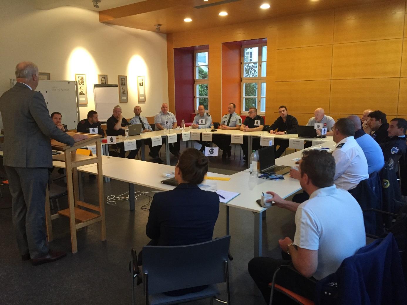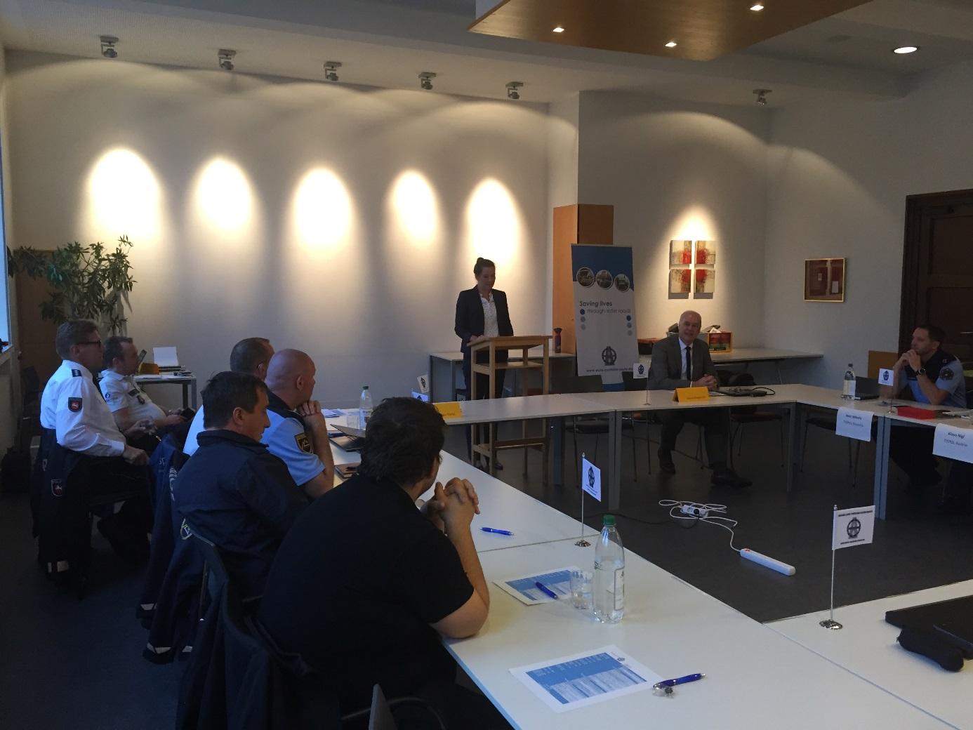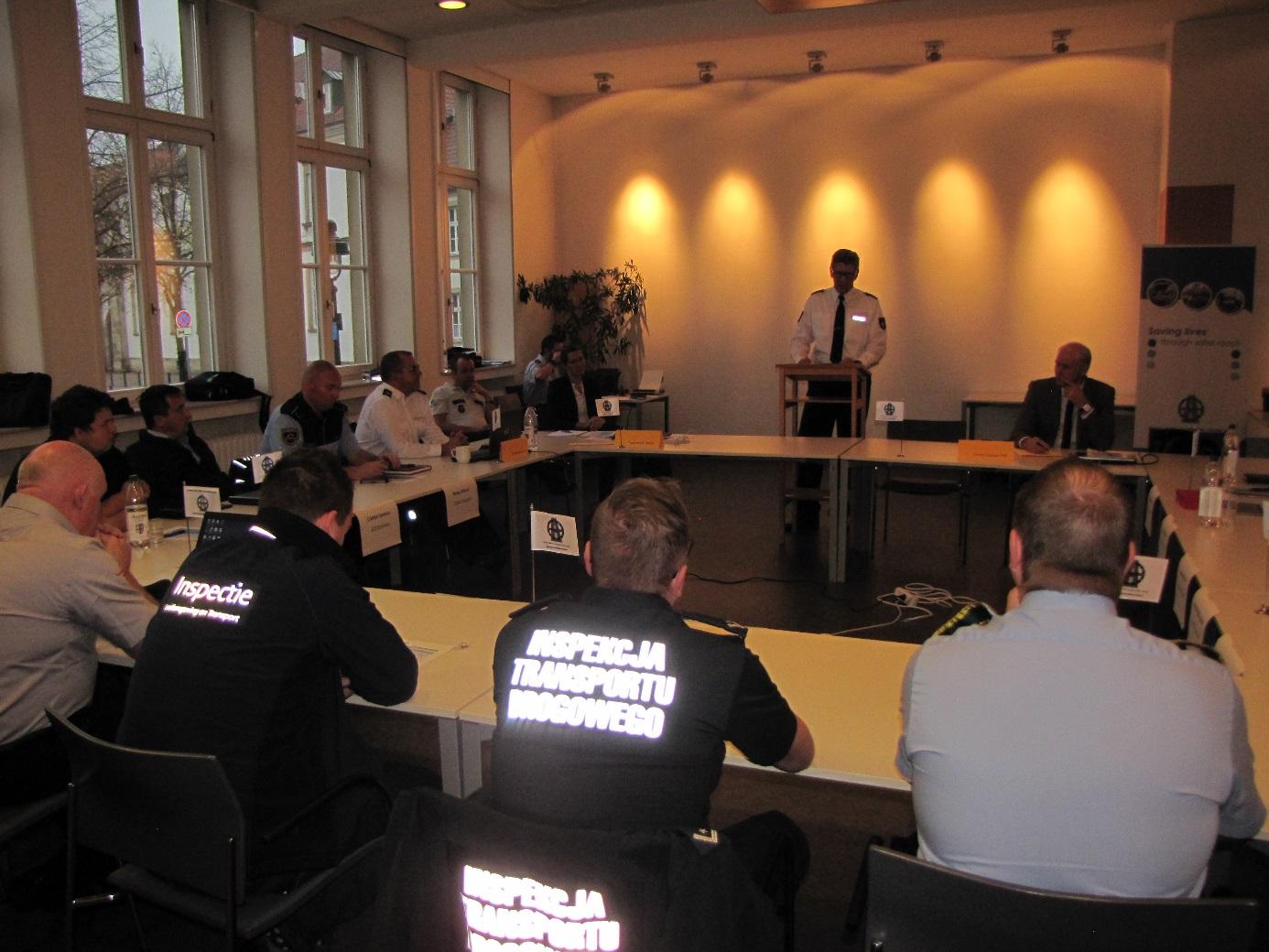 Spotkanie zostało oficjalnie otwarte przez gospodarzy niemieckich: Pana Martina Piepmeyera z Policji w Osnabrück oraz przedstawicieli BAG. Następnie zajęcia poprowadził Pan Sven Kilian z niemieckiej Policji, który omówił historię tachografów (jak zmieniał się sposób rejestracji zapisów) oraz zagadnienia związane z pozyskiwaniem danych z cyfrowych urządzeń rejestrujących, a także przedstawił najciekawsze przypadki kontroli, w których wykryto manipulacje tachografów cyfrowych.