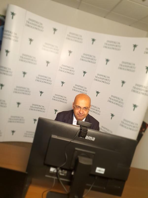 Spotkanie online dotyczyło działań zapobiegających rozprzestrzenianiu się koronawirusa prowadzonych przez Inspekcję Transportu Drogowego. Inspektorzy ITD wspierają m.in. Straż Graniczną na wewnętrznych granicach państwa. Oprócz tego kontrolują ilość pasażerów w autobusach komunikacji publicznej.