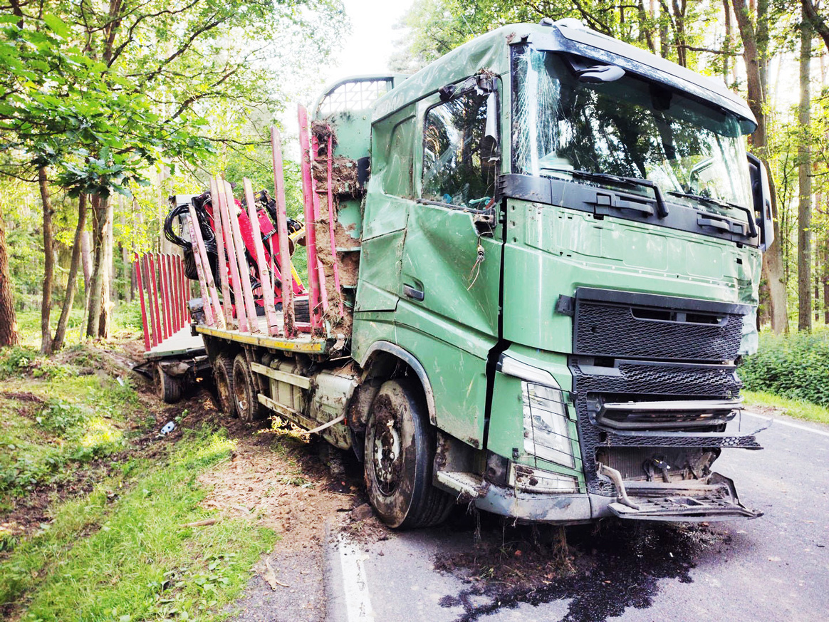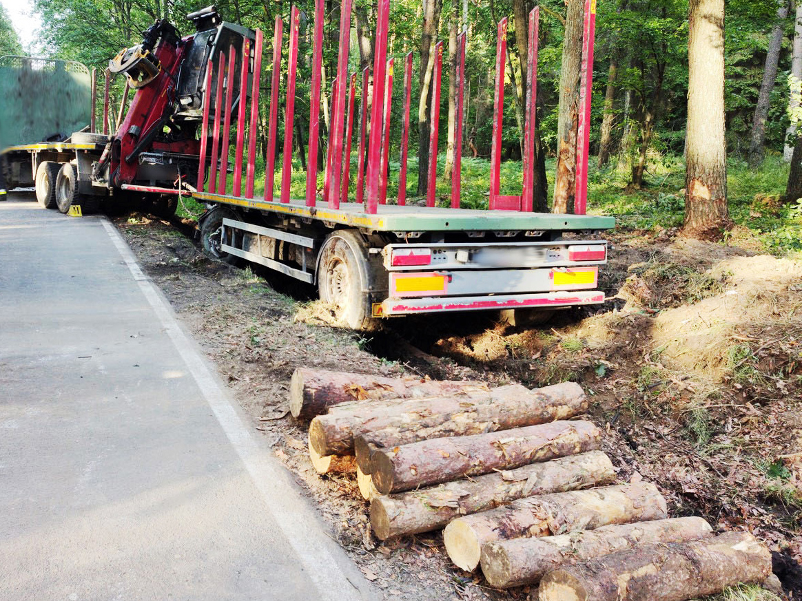 Na drodze krajowej nr 39 samochód osobowy zderzył się czołowo z zespołem pojazdów, którym przewożono drewno. Na miejsce wypadku zostali wezwani inspektorzy wielkopolskiej Inspekcji Transportu Drogowego.