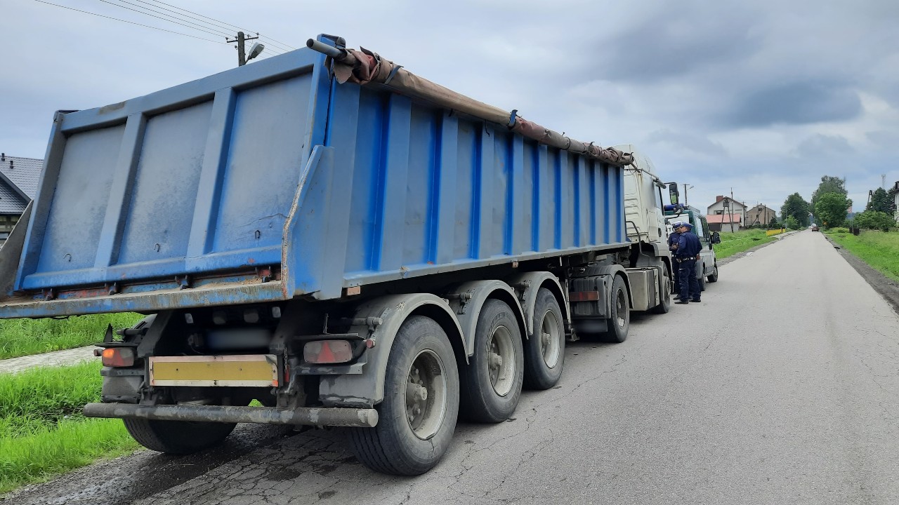 Kierowca nie rejestrował czasu pracy, a wysłana w trasę naczepa nie miała ważnego przeglądu technicznego - transport z naruszeniami zatrzymali do kontroli funkcjonariusze z mazowieckiej Inspekcji Transportu Drogowego i Policji. Kierowca wjechał na drogę objętą zakazem tonażowym.
