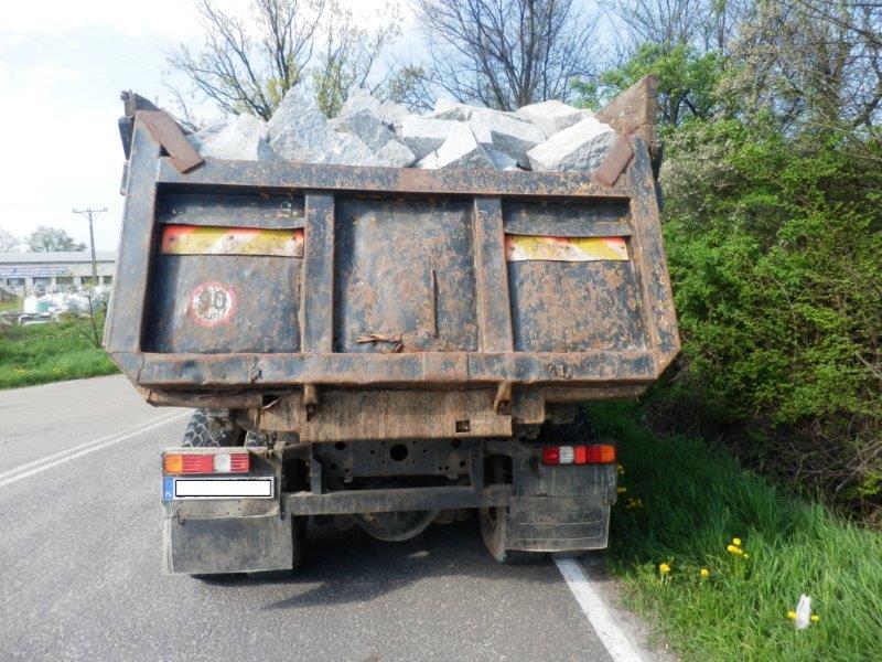 Inspektorzy z Dolnośląskiego Wojewódzkiego Inspektoratu Transportu Drogowego w trakcie kontroli w Strzegomiu spostrzegli poruszający się po drodze krajowej nr 5 pojazd przewożący formak granitowy, który w żaden sposób nie został zabezpieczony i niezwłocznie zatrzymali go do kontroli.