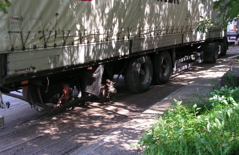 Usłyszawszy takie komunikaty inspektorzy postanowili zatrzymać uszkodzony pojazd. Od strony Łowicza zbliżał się zestaw pozostawiający wiele do życzenia. Jak się okazało kierowca jechał z Olsztyna. Brakowało koła na trzeciej osi, z prawej strony naczepy. Stwierdzono, iż naczepa poza brakiem koła miała uszkodzony układ hamulcowy. Ponadto w ciągniku była pęknięta szyba czołowa oraz poważny wyciek płynów eksploatacyjnych z silnika. W tej sytuacji zakazano dalszej jazdy, zatrzymano dowody rejestracyjne, zaś kierowca został ukarany mandatem karnym.