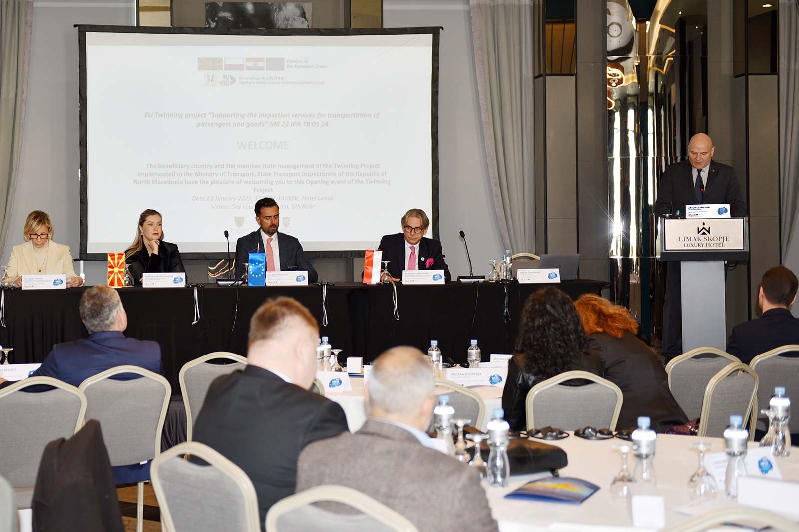 W uroczystej inauguracji projektu wzięli udział przedstawiciele Głównego Inspektoratu Transportu Drogowego w Warszawie, chorwackiego Ministerstwa Morza, Transportu i Infrastruktury, po stronie Macedonii Północnej wysocy rangą przedstawiciele Ministerstwa Transportu i Komunikacji i Państwowego Inspektoratu Transportu, jak również Delegatury Unii Europejskiej w Skopje oraz strony społecznej.