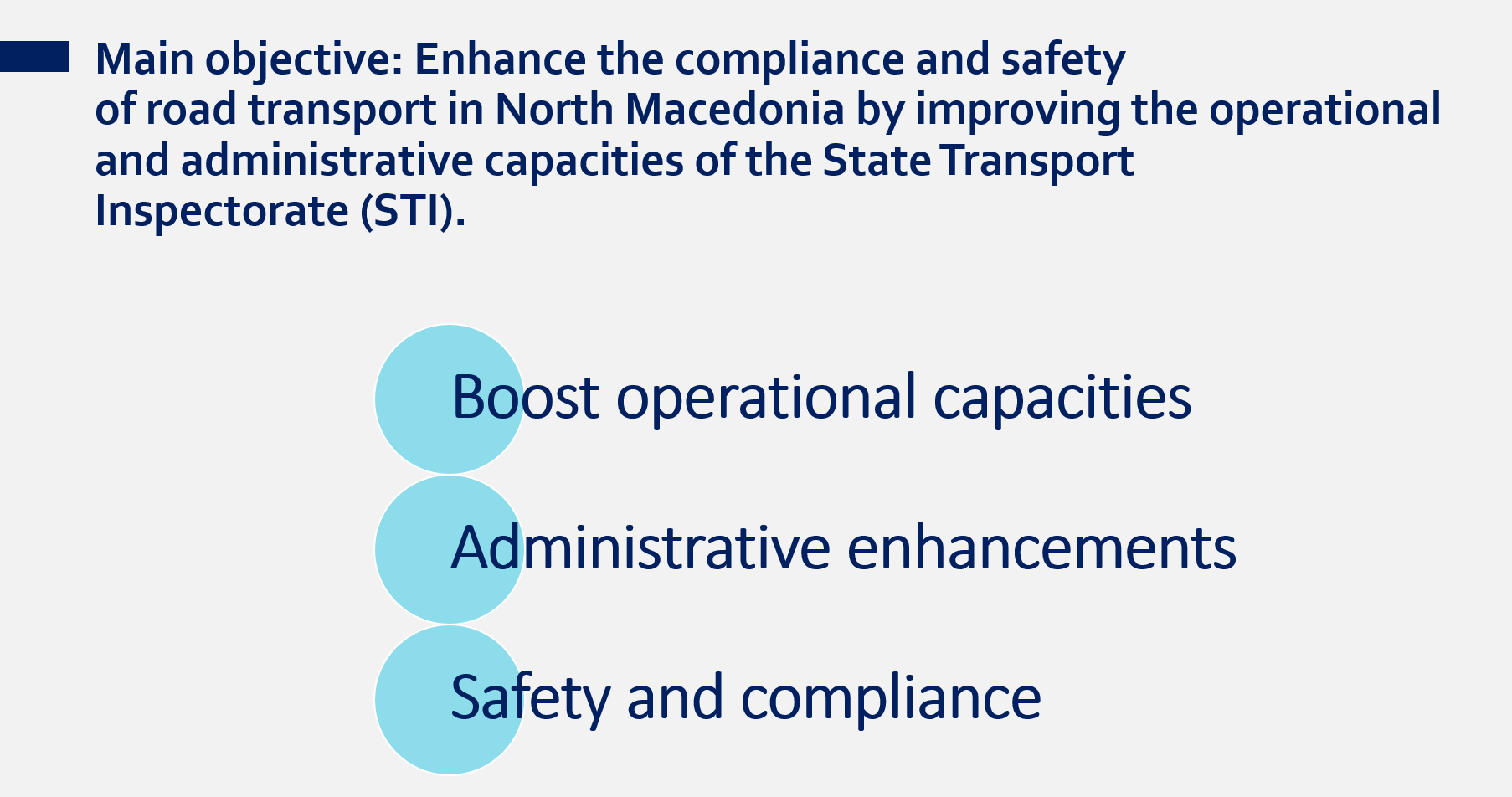 Finalnie projekt ma przynieść nowoczesny system kontroli, lepsze dostosowanie lokalnych regulacji do wymogów UE, wyższy poziom bezpieczeństwa ruchu drogowego oraz zacieśnienie więzi polityczno-gospodarczych między Macedonią Północną a Polską (i Chorwacją).