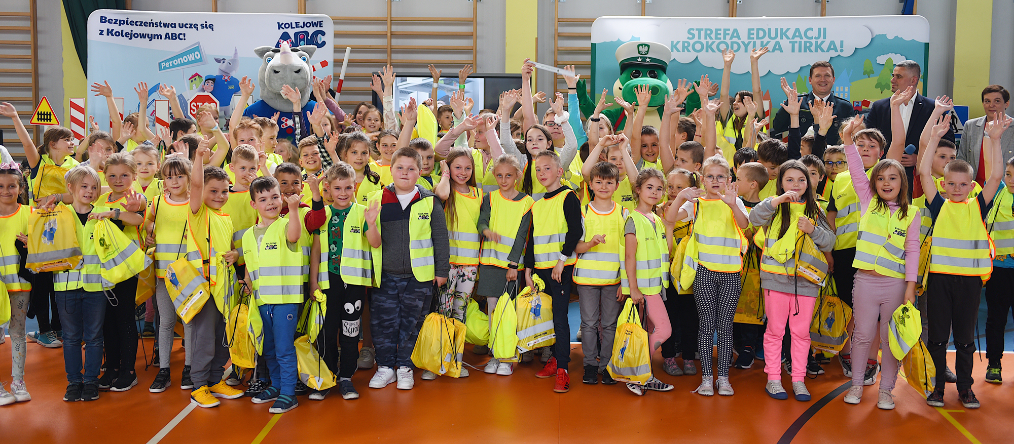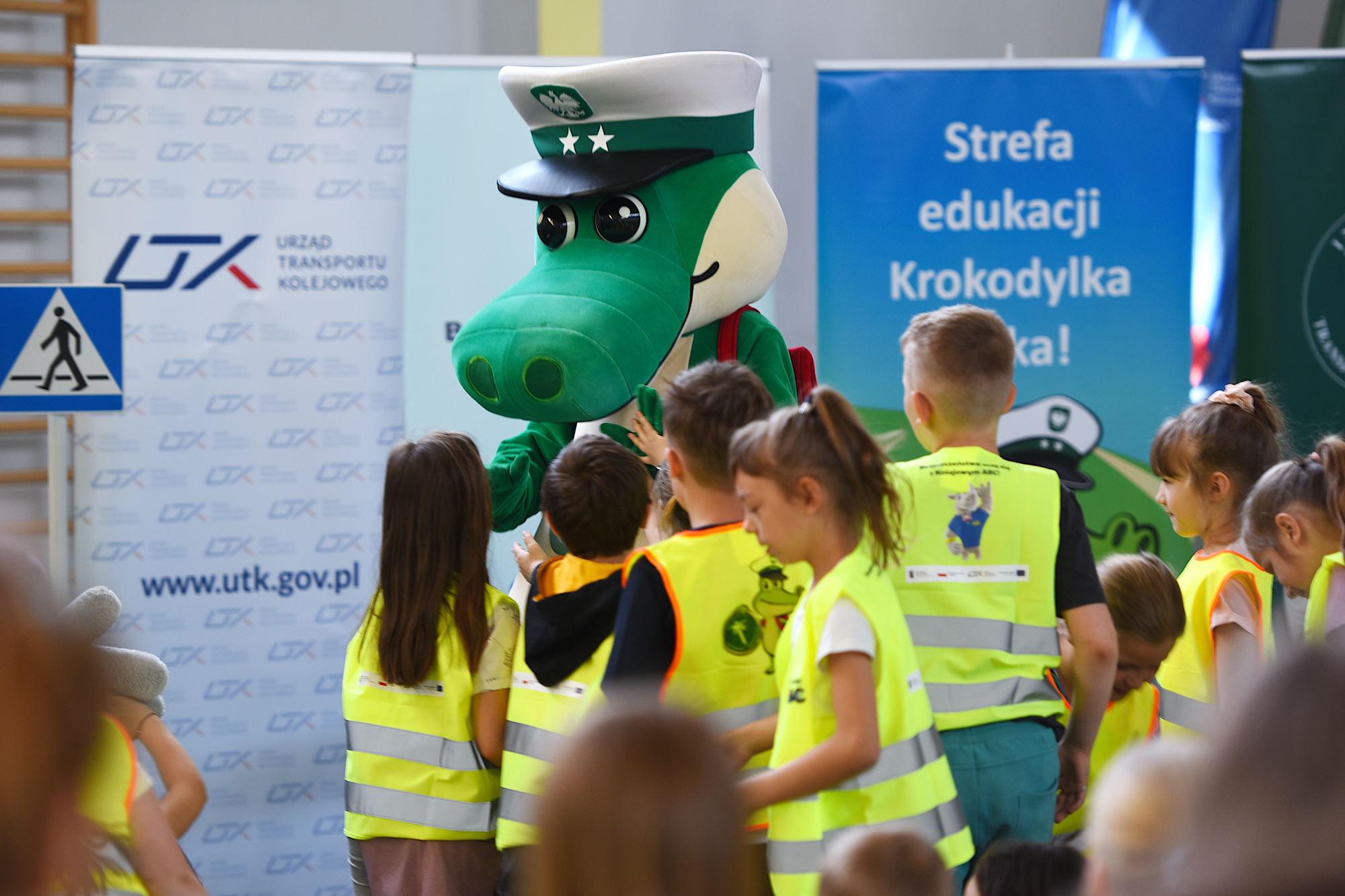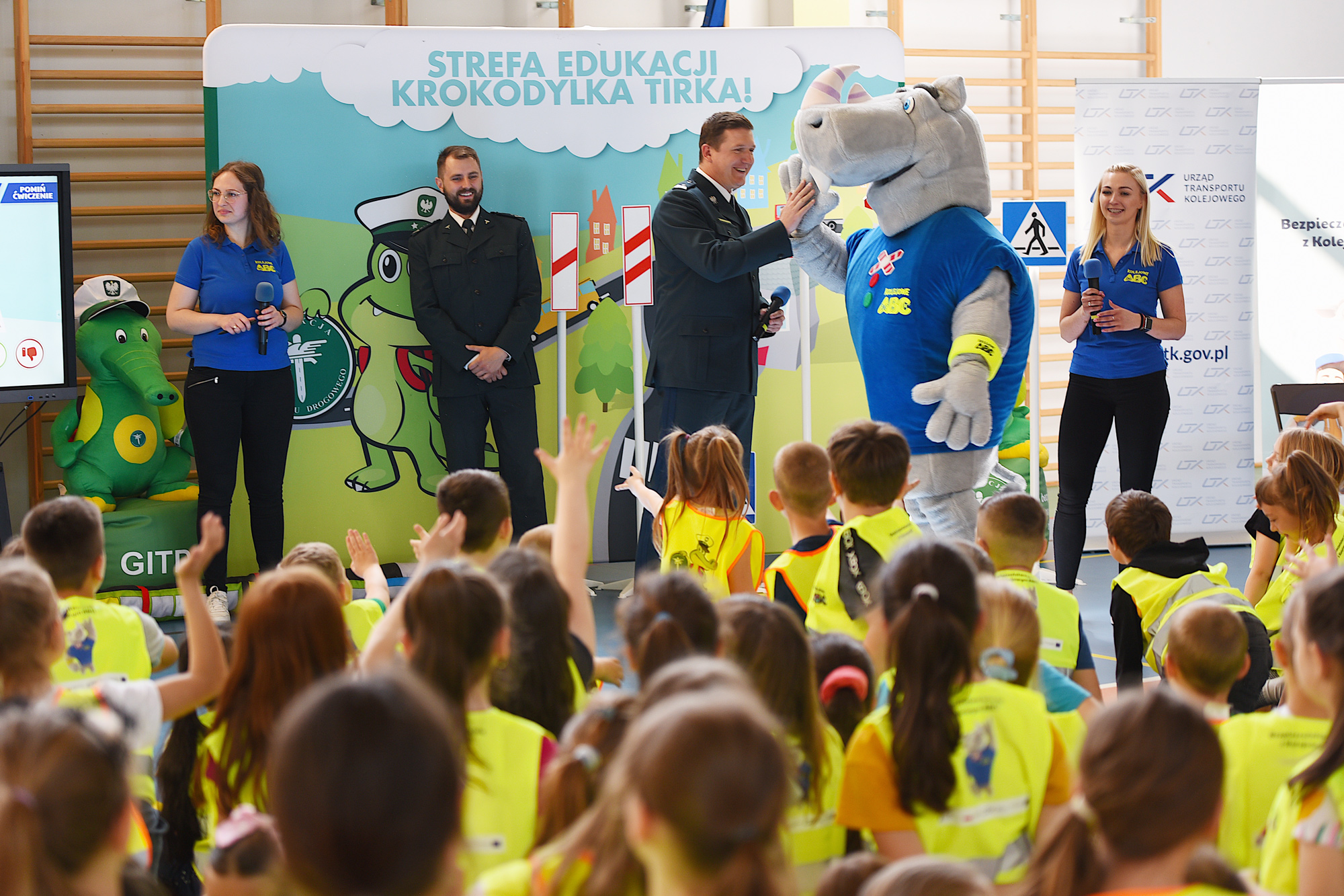 Krokodylek Tirek i Rogatek połączyli siły i zawitali wspólnie do jednej ze szkół podstawowych na Mazowszu. Zasady bezpiecznego poruszania się po drogach i korzystania z obszarów kolejowych przypomnieli dzieciom p.o. zastępca Głównego Inspektora Transportu Drogowego Michał Mostowski i wiceprezes Urzędu Transportu Kolejowego Marcin Trela.