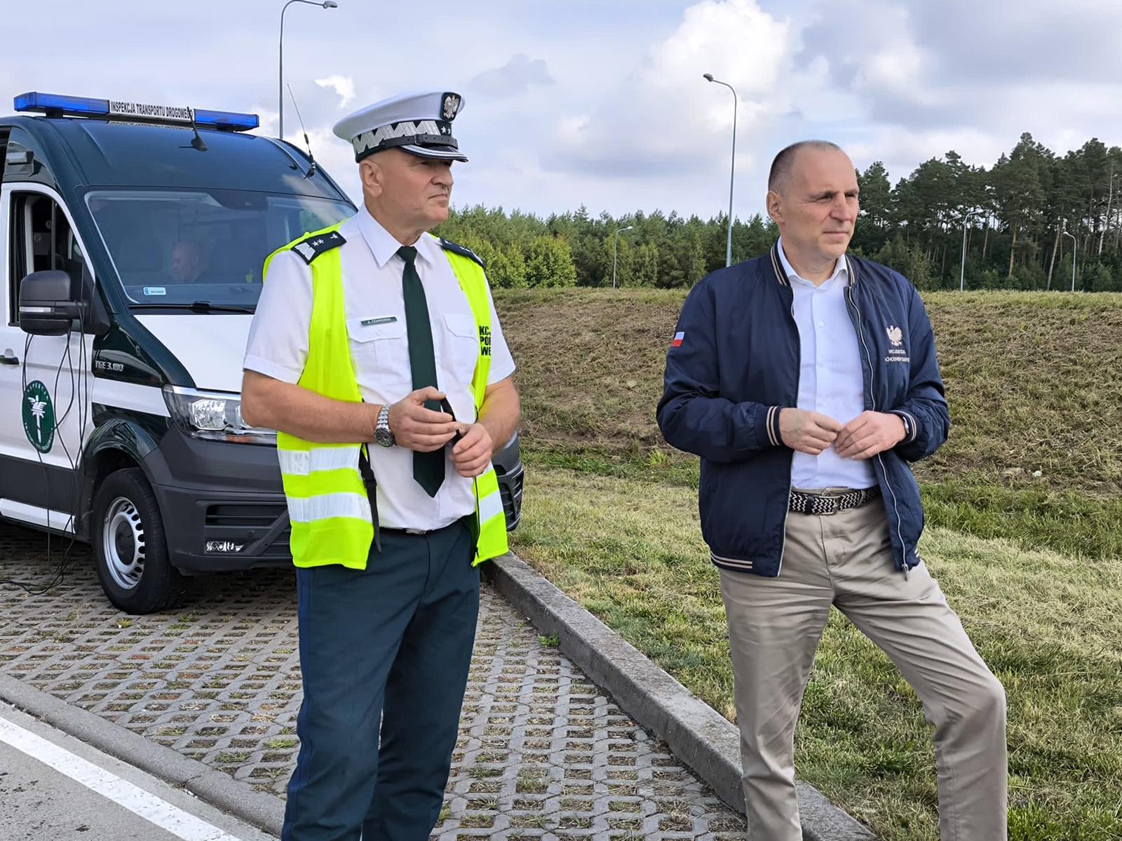 W czwartek (8 sierpnia) w punktach kontrolnych na S3 - MOP Kunowo Zachód oraz MOP Marwice Wschód, inspektorzy ze Szczecina i Gorzowa Wielkopolskiego przeprowadzili kontrole wspólnie z funkcjonariuszami niemieckiego BALM. W działaniach wzięli również udział inspektorzy Biura Kontroli Opłaty Elektronicznej oraz CANARD. Pracy funkcjonariuszy przyglądał się Główny Inspektor Transportu Drogowego Artur Czapiewski, Wojewoda Zachodniopomorski Adam Rudawski oraz dyrektor Biura Nadzoru Inspekcyjnego GITD Rafał Rewoliński.