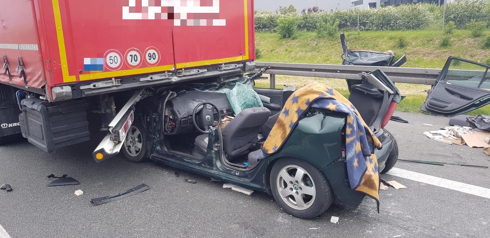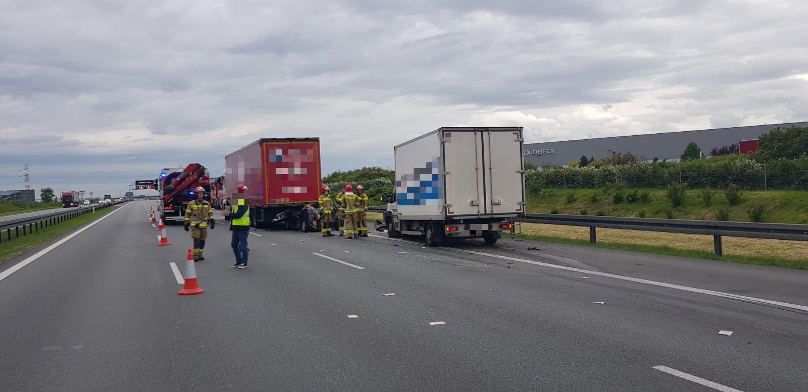 We wtorek (25 maja) po godz. 8 na odcinku autostrady A2 Komorniki - Poznań Zachód, samochód osobowy wjechał w tył naczepy ciężarowej i chwilę później został uderzony w tył przez samochód dostawczy. Siła zderzenia była tak duża, że kierowca osobówki został uwięziony w pojeździe. Do uwolnienia kierowcy strażacy musieli użyć specjalistycznego sprzętu hydrualicznego. Mężczyzna został przetransportowany do szpitala.