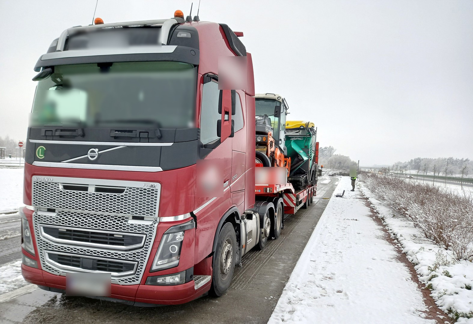 Ciężarówka przewożąca dwie maszyny drogowe była za ciężka, za długa, za szeroka i za wysoka. Wystarczyło zdjąć z naczepy walec, żeby transport mógł jechać dalej. Rozładunek polecili inspektorzy Inspekcji Transportu Drogowego z Gniezna.