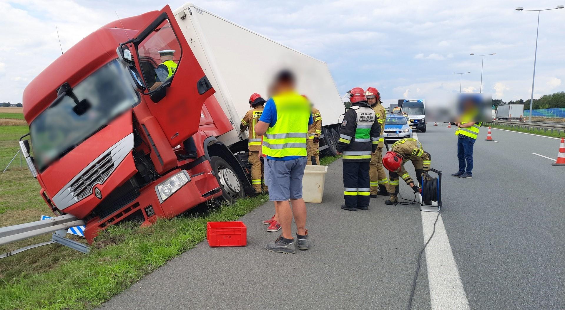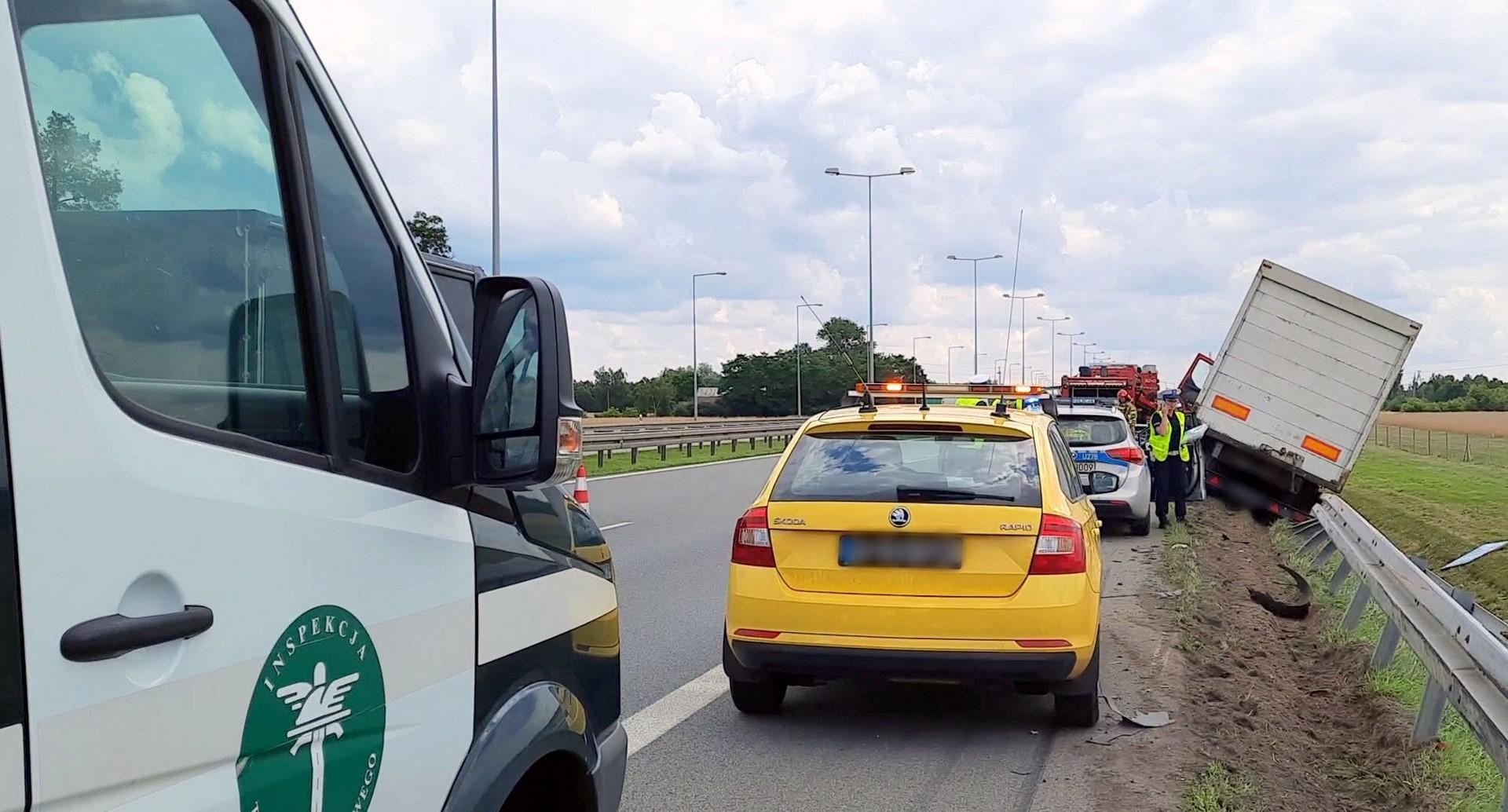 Jak niebezpieczny jest wystrzał opony przekonał się kierowca polskiej ciężarówki. Na autostradzie A2 stracił panowanie nad prowadzonym zestawem i uderzył w bariery. Na szczęście kierowca nie odniósł obrażeń. Na miejscu zdarzenia pojawili się inspektorzy wielkopolskiej Inspekcji Transportu Drogowego, którzy jechali do punktu kontrolnego. Kontrola czasu pracy kierowcy nie wykazała żadnych nieprawidłowości.