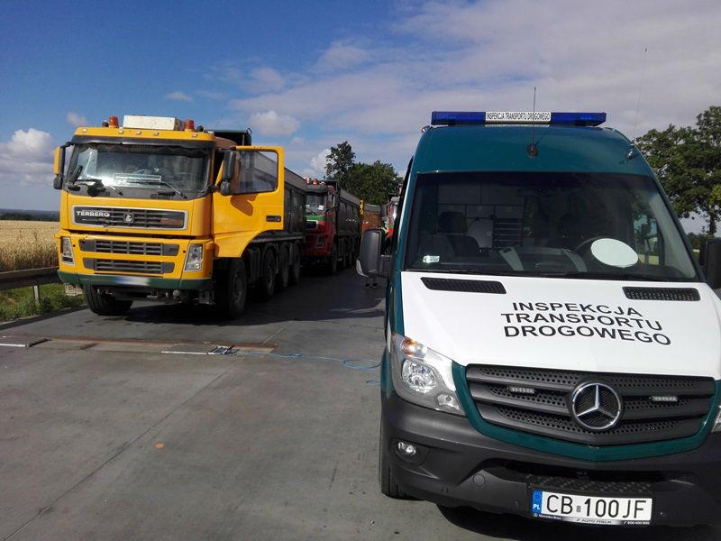 Pięć ciężarówek z piaskiem jechało drogami powiatowymi w Łochowicach i w Gorzeniu. Wszystkie pojazdy zatrzymali do kontroli w środę (3 lipca) kujawsko-pomorscy inspektorzy Inspekcji Transportu Drogowego. Już na pierwszy rzut oka wywrotki wydawały się być przeładowane - inspektorzy skierowali je na stanowisko ważenia w Trzeciewnicy. Ciężarówki ważyły od ponad 44 do blisko 49 ton, zatem zdecydowanie za dużo. W tym przypadku dopuszczalna masa całkowita to 32 tony. Znaczna nadwyżka przewożonego ładunku spowodowała także przekroczenia dopuszczalnych nacisków osi.