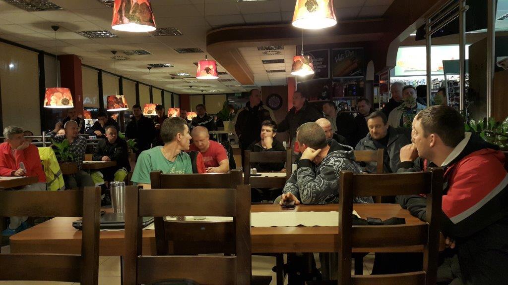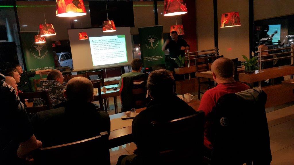 W dniu 24 lutego od godziny 18:00 w części restauracyjnej jednej z dolnośląskich stacji paliw odbyło się kolejne, XXI spotkanie w ramach "Stolika Inspekcyjnego". Tematami przewodnim spotkania był "Czas pracy kierowców oraz stosowanie urządzeń rejestrujących", istotne z punktu widzenia bezpieczeństwa w ruchu drogowy, jak i odpowiedzialności kierowców w świetle załącznika nr 1 do ustawy o transporcie drogowym. Spotkanie miało charakter otwarty. Uczestniczyło w nim około czterdziestu odpoczywających lub realizujący przerwę kierowców, a także innych osób zainteresowanych regulacjami związanymi z przewozami drogowymi. Przez ponad dwie godziny inspektorzy z Wojewódzkiego Inspektoratu Transportu Drogowego we Wrocławiu odpowiadali na zadawane pytania, zwracając w szczególności uwagę na najczęściej popełniane przez kierowców błędy. Wiele wątpliwości kierujących dotyczyło odpoczynków tygodniowych, ich rekompensat, odpoczynków dziennych, w tym wykorzystywanych na promie, jazdy w załodze, wpisów manualnych i zaświadczeń o dniach wolnych. Zaproponowane tematy cieszyły się największym zainteresowaniem. Niejednokrotnie jednak zadawano pytania wykraczając po za ich ramy. Pytano o regulacje dotyczące zakazów ruchu pojazdów ciężarowych, limity dopuszczalnej prędkości oraz o inne związane z transportem. Nowością spotkania, w stosunku do poprzednich, była możliwość przełożenia teorii na praktykę. Inspektorzy dysponowali symulatorami tachografów cyfrowych, na których kierowcy ćwiczyli dokonywanie wpisów manualnych uzupełniających ich aktywności od wyjęcia do włożenia kart kierowcy oraz sporządzanie wydruków z tachografów, w tym graficznych prędkości, o których nie wszyscy uczestnicy spotkania wiedzieli. Zostały również zaprezentowane dodatkowe możliwości nowych urządzeń rejestrujących związane z kontrolą czasu jazdy, przerw i odpoczynku kierowców, co wzbudziło bardzo duże zainteresowanie.