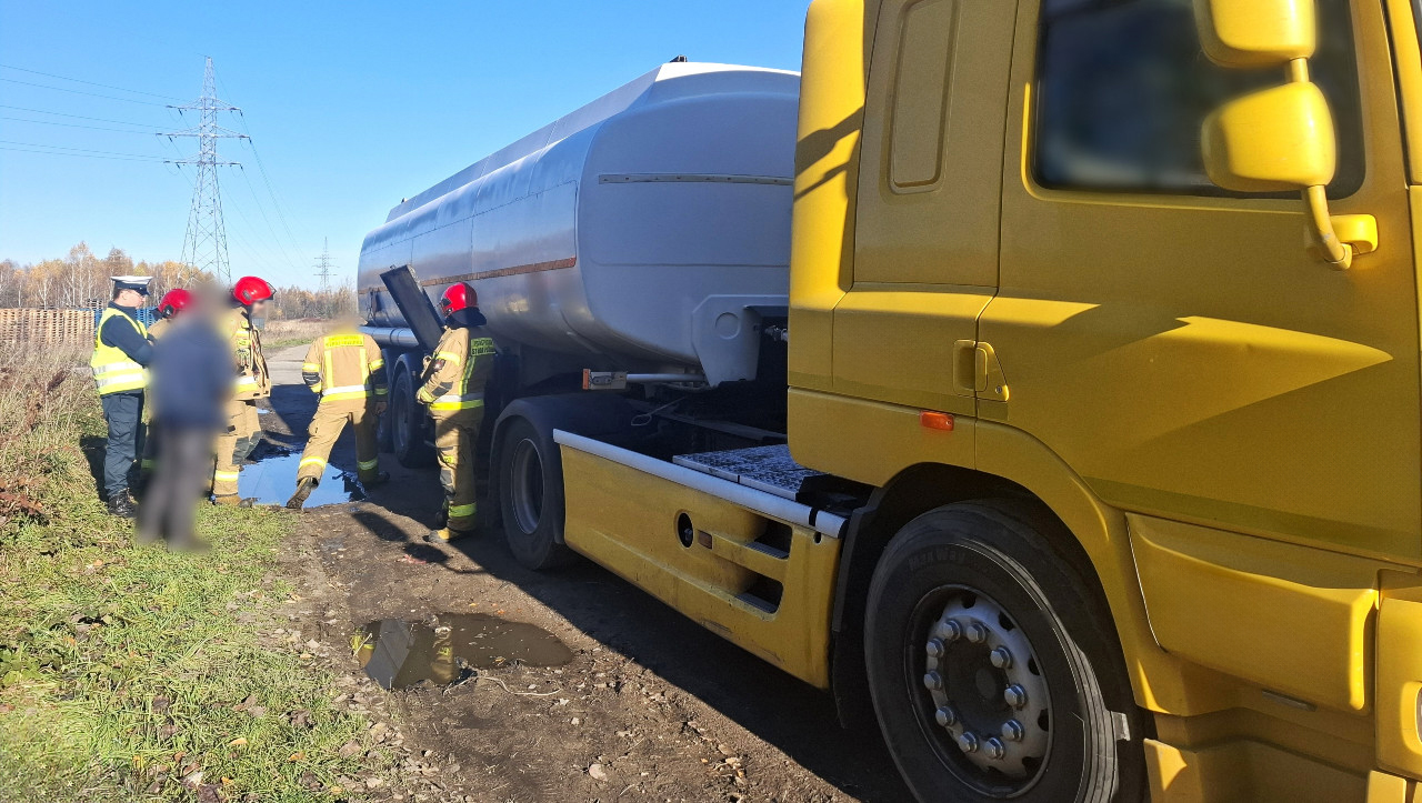 Kontrola drogowa, którą w piątek (7 listopada) na DK50 przeprowadzili siedleccy inspektorzy WITD Radom, zakończyła się zakazem dalszej jazdy ukraińskiego ciągnika siodłowego z naczepą typu cysterna. W zbiorniku przewożona była benzyna z Litwy na Ukrainę. Paliwo wyciekało z armatury systemu zaworowego umieszczonego pod cysterną. Ponadto przewody instalacji elektrycznej nie były zabezpieczone odpowiednią osłoną, a część z nich była prowizorycznie oklejona taśmą izolacyjną. Sytuacja stwarzała bezpośrednie zagrożenie pożarowe, dlatego na miejsce wezwano Straż Pożarną. Stwierdzono również nieszczelność układu pneumatycznego naczepy, odpowiedzialnego m.in. za prawidłowe działanie hamulców. Kontrola wykazała również naruszenia przepisów umowy ADR, regulującej międzynarodowy przewóz towarów niebezpiecznych w zakresie właściwego oznakowania.