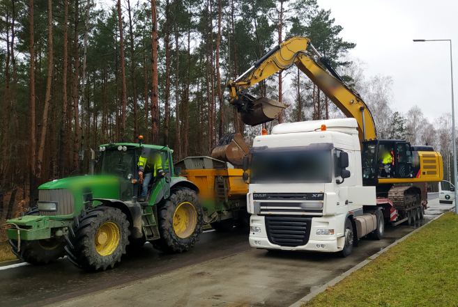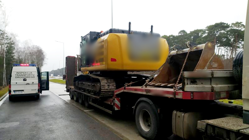 Ponad 12 ton więcej ważył pojazd przewożący na naczepie koparkę i dodatkową łyżkę. Inspektorzy z Wojewódzkiego Inspektoratu Transportu Drogowego w Bydgoszczy wstrzymali przejazd i nakazali przeładować zbyt ciężki ładunek.