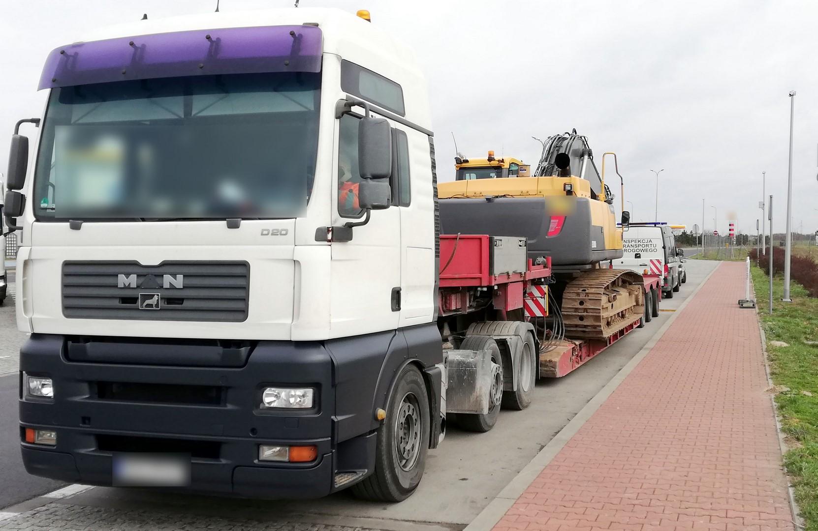 Ponad 60 ton - przy dopuszczalnej masie całkowitej 40 ton - ważyła ciężarówka którą przewożono koparkę gąsienicową. Była też za szeroka, za wysoka oraz za długa niż pozwalają przepisy. Kierowca okazał wielkopolskim inspektorom Inspekcji Transportu Drogowego tylko prawo jazdy i wykresówkę z dnia kontroli.