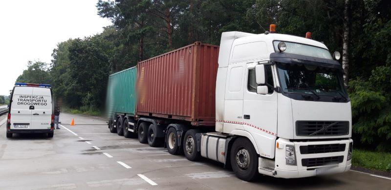Skontrolowany przez bydgoskich inspektorów zespół pojazdów, którym przewożono kontenery morskie ważył ponad 63 tony. Podczas kontroli stwierdzono również brak aktualnych badań technicznych ciągnika oraz skrócenie odpoczynku dziennego przez kierowcę.
