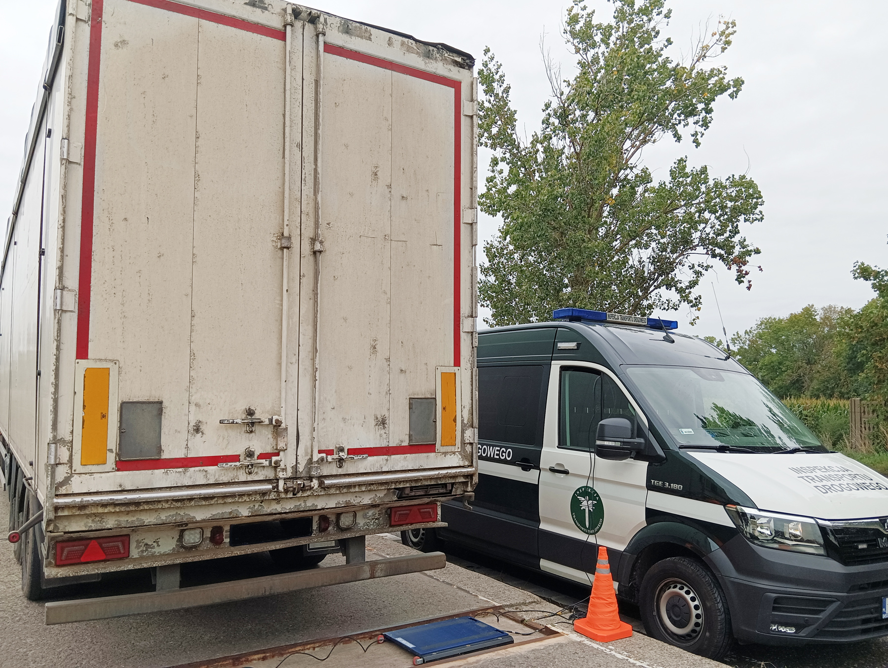 W poniedziałek (2 października), w Żabowie, inspektorzy z Wojewódzkiego Inspektoratu Transportu Drogowego w Szczecinie zatrzymali do rutynowej kontroli zespół pojazdów, którym przewożono zrębki leśne. Podejrzewając, że zestaw może być przeładowany, inspektorzy skierowali go do punktu kontrolnego. Tam dokonano ważenia ciężarówki. Masa całkowita zespołu pojazdów była za duża o ponad 2 t – inspekcyjne wagi wskazały 42,35 t. Przekroczony był też maksymalnie dopuszczalny nacisk pojedynczej osi napędowej na nawierzchnię drogi. To jeszcze nie wszystko. Niebezpieczną usterkę wykazała kontrola stanu technicznego naczepy. Mocno zniszczona była jedna z opon.