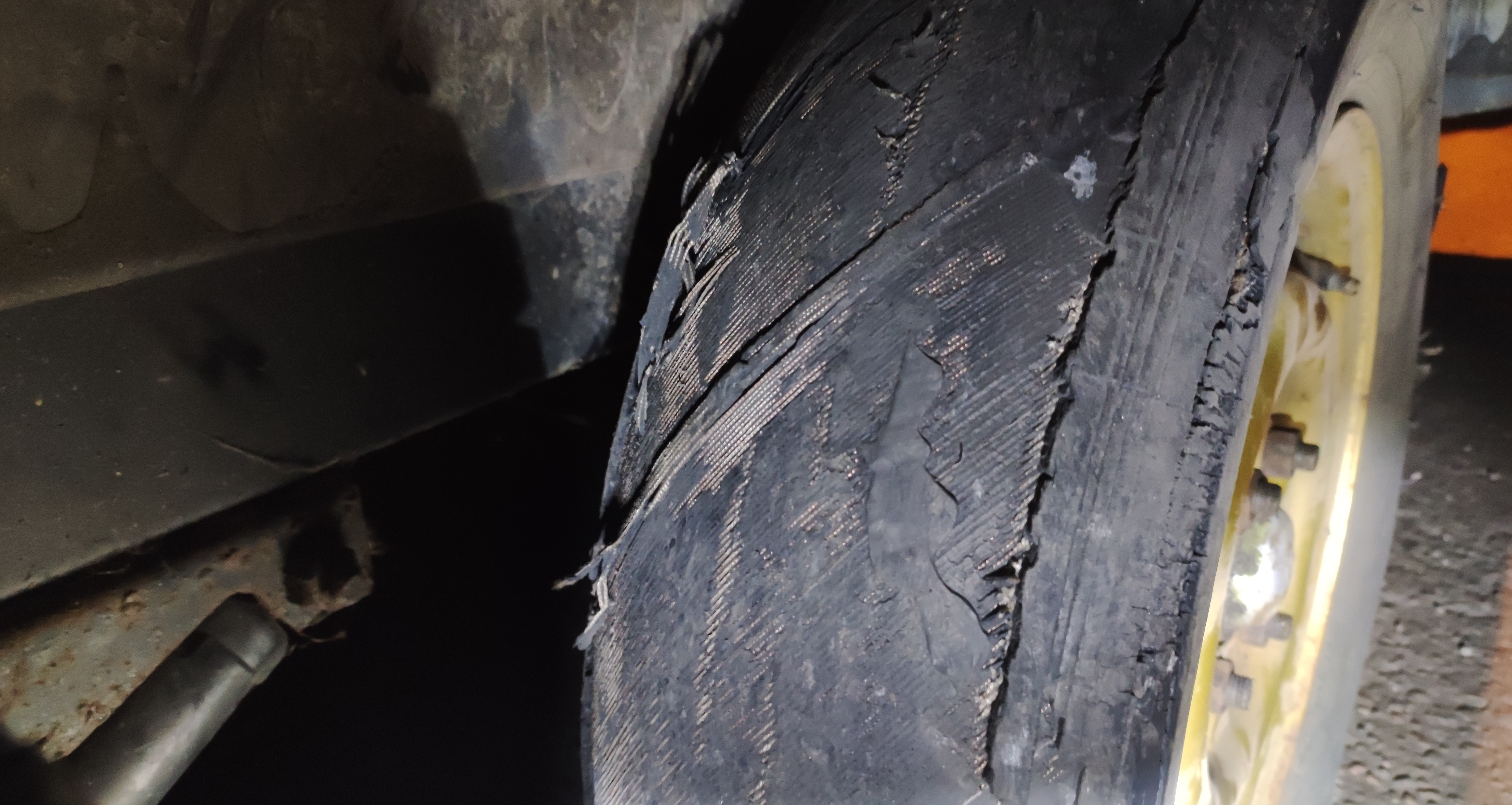 W środę (30 listopada), na warmińsko-mazurskim odcinku ekspresowej „siódemki” w pobliżu Nidzicy, patrol GITD zatrzymał do kontroli samochód dostawczy z podpiętą przyczepą kempingową. Powodem podjęcia tej interwencji było niesprawne oświetlenie w przyczepie – nie działały wszystkie światła. W trakcie kontroli stanu technicznego, inspektorzy stwierdzili również fatalny stan ogumienia przyczepy. Niektóre opony były mocno popękane i miały zużyty bieżnik do tego stopnia, że widoczne były druty. Przyczepa nie powinna się poruszać po drogach publicznych nie tylko z powodu wykrytych usterek. Pojazd nie miał ważnego przeglądu technicznego od 2012 r. Oprócz tego zatrzymany do kontroli drogowej zespół pojazdów podlegał obowiązkowi wnoszenia elektronicznej opłaty za przejazd płatnym odcinkiem drogi, ale nie był zarejestrowany w systemie e-TOLL.