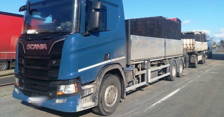 Blisko 50 ton zamiast dopuszczalnych 40 ważyła ciężarówka z przyczepą, którą przewożono betonowe zbiorniki na ścieki. Zestaw był również za długi. Kierowcy zamiast rejestrować swoje aktywności równolegle umieszczali w tachografie tylko kartę tego, który w danej chwili prowadził samochód.