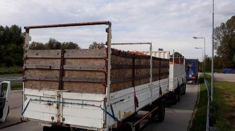 Blisko 49 ton zamiast dopuszczalnych 40 ton ważył zestaw przewożący jabłka. Przyczepa z nadmiarem ładunku nie miała też ważnego badania technicznego. Nieprawidłowy przewóz wstrzymali funkcjonariusze mazowieckiej Inspekcji Transportu Drogowego.