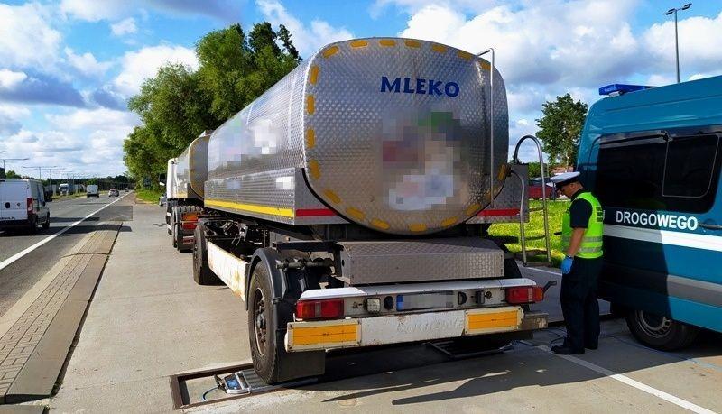 Ciężarówkę - cysternę przewożącą mleko skierowali na wagę funkcjonariusze bydgoskiej Inspekcji Transportu Drogowego. Zestaw był przeładowany blisko o 9 ton. Nieprawidłowy przewóz wstrzymano. Nadmiar mleka został przelany do innego pojazdu.
