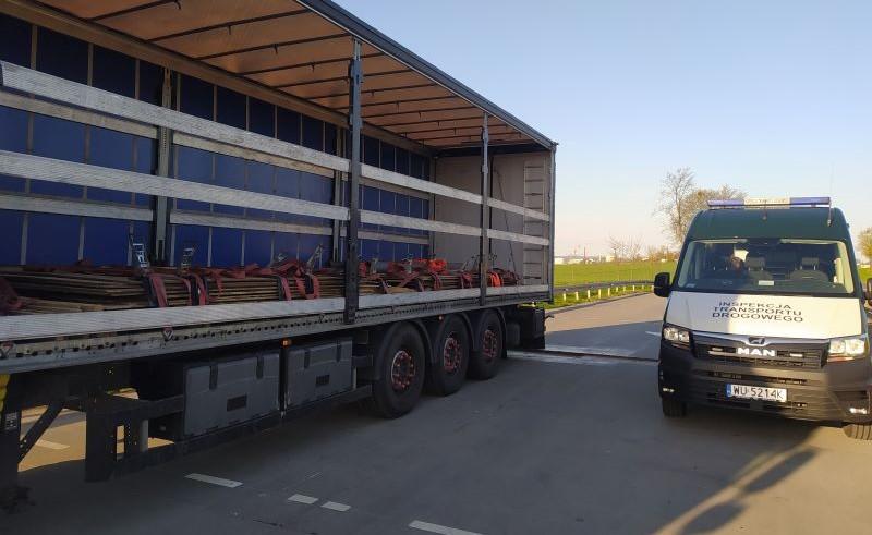 Pierwszy został zatrzymany zestaw należący do polskiego przewoźnika. Zespół pojazdów z arkuszami blachy stalowej ważył 52,85 tony zamiast dopuszczalnych 40 ton. Za duży tonaż spowodował, że nacisk pojedynczej osi napędowej ciągnika siodłowego przekraczał 11,5-tonową normę o blisko 3 tony i wynosił 14,45 tony. Z kolei potrójna oś naczepy zamiast przepisowych 24 ton wywierała na drogę naciski większe o ponad 6 ton (30,4 tony).