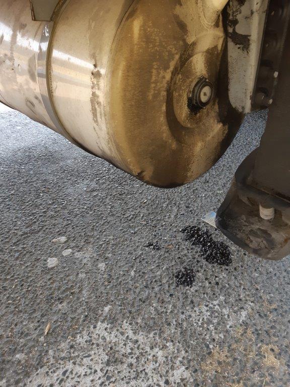 Jak się okazało czas pracy kierowcy nie był jedyną nieprawidłowością. Sporo do życzenia pozostawiał również stan techniczny naczepy. Jedna z opon na drugiej osi miejscami nie miała już bieżnika. Oprócz tego z pojazdu wyciekały płyny eksploatacyjne.