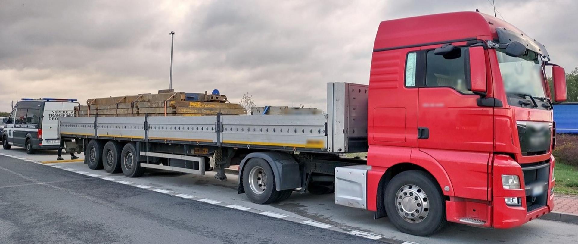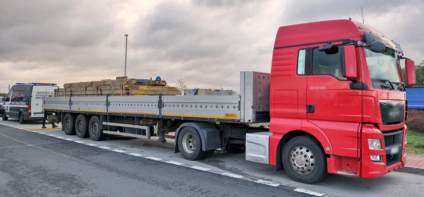 Nieprawidłowy przewóz metalowych elementów do zabezpieczenia ścian wykopów wstrzymali tymczasowo inspektorzy z wielkopolskiej Inspekcji Transportu Drogowego. Naciski osi naczepy na drogę przekraczały dopuszczalną normę o blisko 2,5 tony. Zestaw ciężarowy był również za długi.