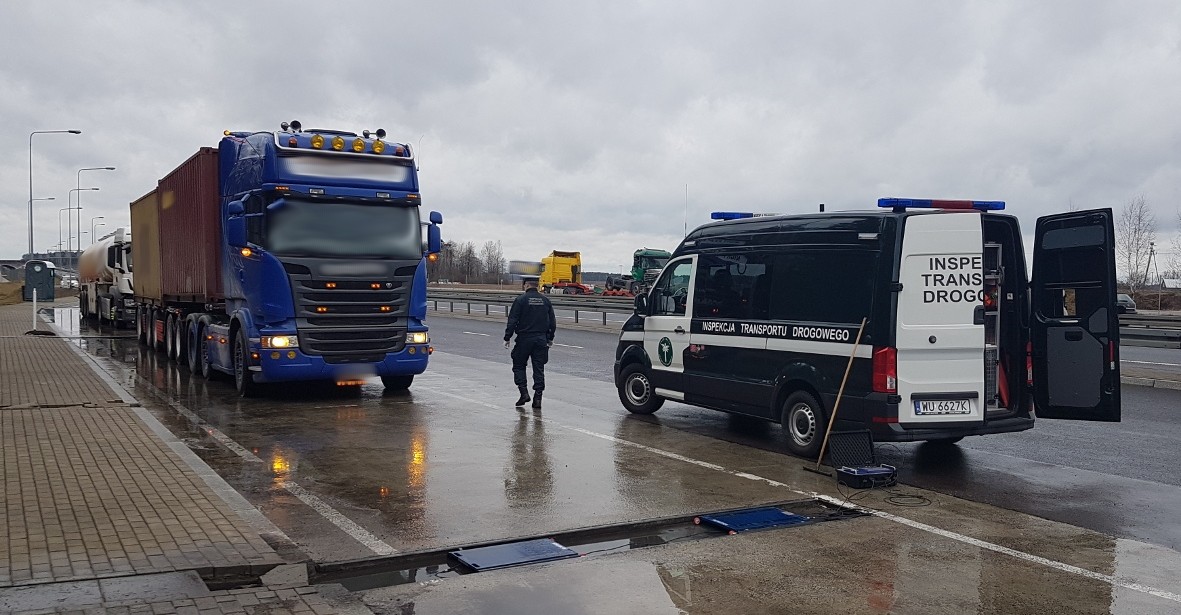 W poniedziałek (21 lutego), na jednej z dróg miejskich w Wysokiem Mazowieckiem, patrol ITD zatrzymał do kontroli zestaw składający się aż z trzech pojazdów: ciągnika siodłowego, naczepy i przyczepy. Zgodnie z przepisami samochód ciężarowy może ciągnąć tylko jedną przyczepę lub naczepę. Tzw. „stonoga” przewoziła mleko w proszku do portu morskiego w Gdańsku. Nienormatywna ciężarówka z ładunkiem ważyła 62,4 t zamiast dopuszczalnych 40 t. W trakcie kontroli prawidłowości działania tachografu inspektorzy stwierdzili, że zostało do niego wgrane niedozwolone oprogramowanie. Kierowca mógł rejestrować swój odpoczynek zamiast rzeczywistej jazdy. W tej sytuacji ciężarówkę skierowano do uprawnionego serwisu tachografów, gdzie zostało wymienione urządzenie rejestrujące na koszt właściciela pojazdu. W związku z podejrzeniem popełnienia przestępstwa z art. 315 kodeksu karnego sprawę przekazano funkcjonariuszom Policji.