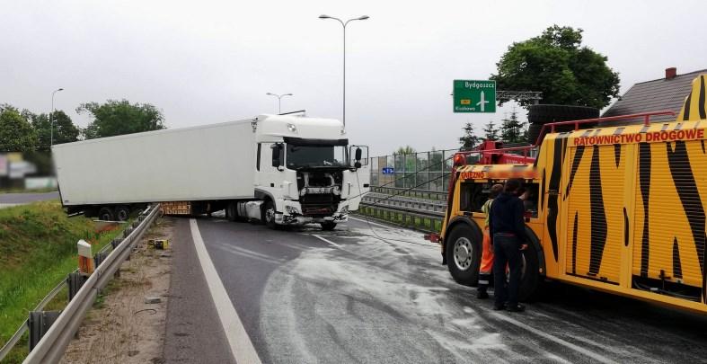 Wezwani na miejsce kolizji inspektorzy ITD zgrali dane z karty kierowcy oraz tachografu cyfrowego. Analiza czasu pracy kierowcy nie wykazała żadnych nieprawidłowości. Mężczyzna rozpoczął pracę po odebranym, skróconym odpoczynku tygodniowym. Przyznał, że w trakcie jazdy po prostu poczuł się bardzo zmęczony i chciał zjechać na najbliższy parking. Po ruszeniu sprzed świateł zdążył przejechać zaledwie 150-200 metrów i przysnął. Ciężarówka zjechała na prawe pobocze i uderzyła w barierę. Do usunięcia rozbitego zestawu potrzebny był specjalistyczny holownik.