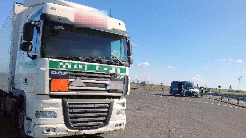 Ciągnik siodłowy z naczepą wypełnioną kukurydzą ważył 46,6 tony. Nadmierna ilość ładunku spowodowała przekroczenie dopuszczalnego nacisku potrójnej osi naczepy o 1,7 tony.
