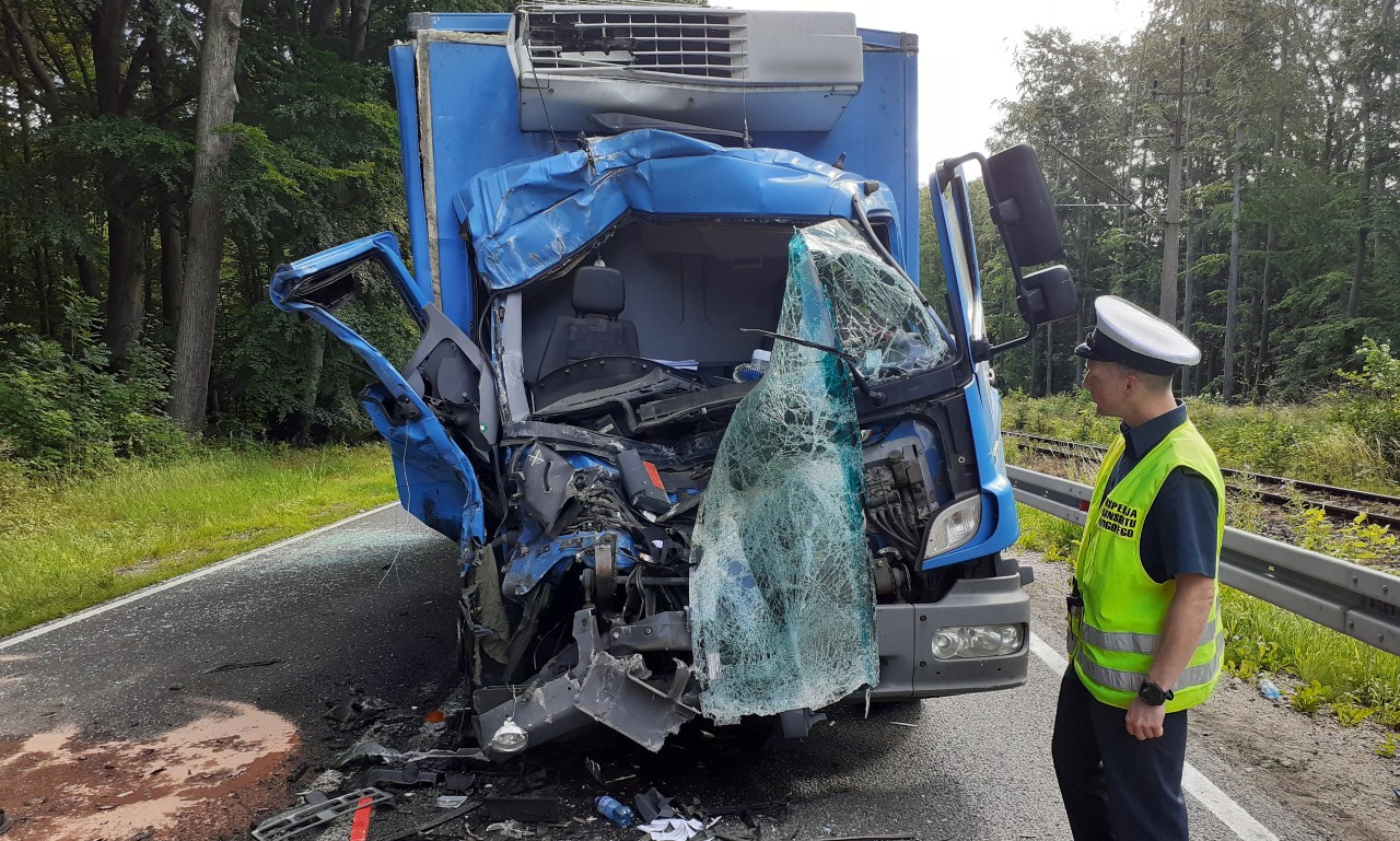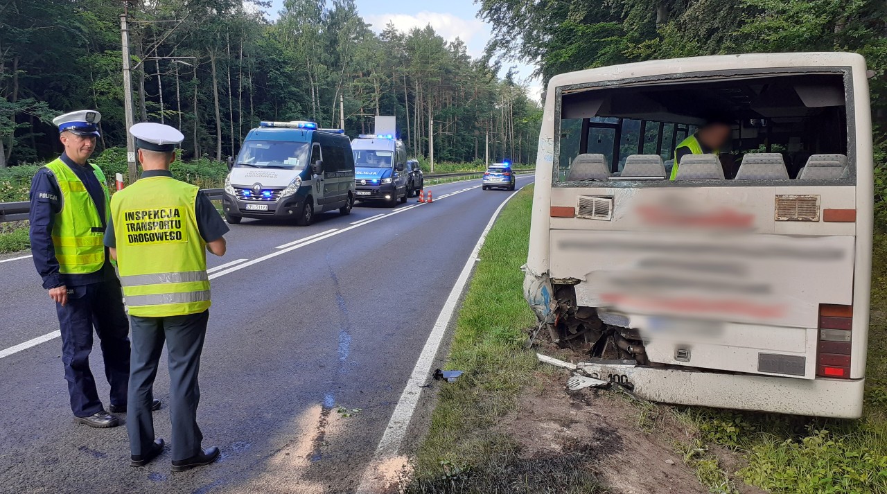 W czwartek (14 lipca), na odcinku krajowej „jedenastki” w pobliżu Kołobrzegu, doszło do wypadku drogowego. Nietrzeźwy kierujący samochodem ciężarowym uderzył z dużą siłą w tył autobusu linii regularnej. Autobusem podróżowało 12 pasażerów. Dwóch pasażerów odniosło obrażenia, w tym jeden został przewieziony do szpitala. Kierowca ciężarówki „wydmuchał” 2 promile alkoholu i został zatrzymany przez Policję. Na miejsce wypadku wezwano również inspektorów ITD. Ze względu na znaczące uszkodzenia kabiny ciężarówki, nie było możliwości pobrania danych z pamięci tachografu i karty kierowcy. Autobus obsługiwał linię regularną na trasie do 50 km, więc jego kierowca był zwolniony z obowiązku rejestrowania swoich aktywności. Dalsze czynności w sprawie ustalenia okoliczności zdarzenia prowadzą funkcjonariusze Policji.