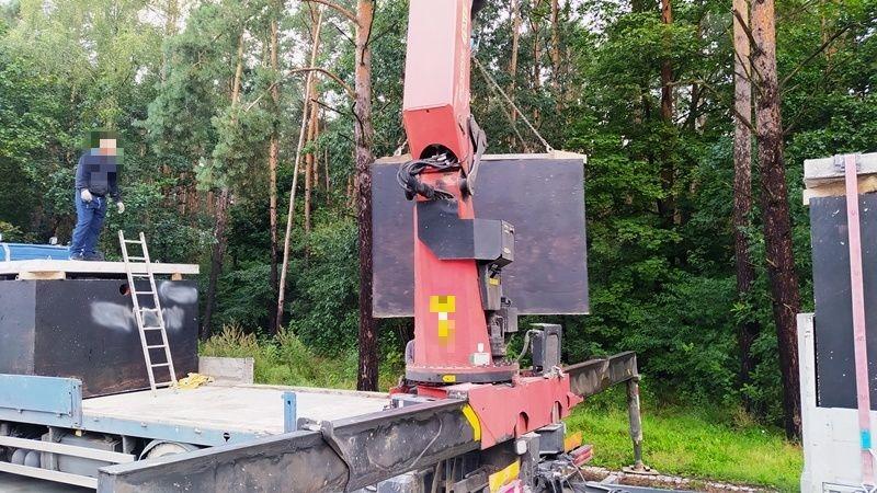 Przeładowany o ponad 20 ton samochód ciężarowy z przyczepą wycofali z ruchu inspektorzy kujawsko-pomorskiej Inspekcji Transportu Drogowego. Zestaw ważący ponad 60 ton zamiast dopuszczalnych 40 przewoził szamba betonowe.