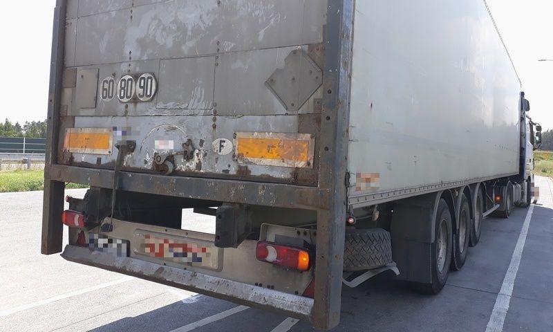 40-tonowy zespół pojazdów, należący do krajowego przewoźnika, zatrzymano do rutynowej kontroli w środę (15 lipca) na ekspresowej "ósemce" w pobliżu Wyszkowa. W ciągniku siodłowym ujawniono nieszczelność układu pneumatycznego i nadmierne luzy w układzie kierowniczym. W naczepie uszkodzone były dwa amortyzatory po lewej stronie przy drugiej i trzeciej osi. Oprócz tego w obu pojazdach wykryto usterki oświetlenia. Naczepa miała również mocno zużyte tablice odblaskowe.