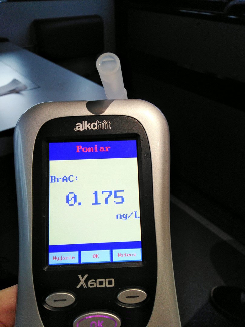Białoruski kierowca, skontrolowany w piątek (12 listopada) na A2 przez inspektorów ITD z wielkopolski, który wykonywał międzynarodowy transport drogowy rzeczy z Belgii do Rosji, również siadł za kierownicę po alkoholu. Pierwsze badanie trzeźwości wykazało 0,3 promila, ale drugie przeprowadzone po kilkunastu minutach już prawie 0,4 promila. Inspektorzy przekazali kierowcę policji.