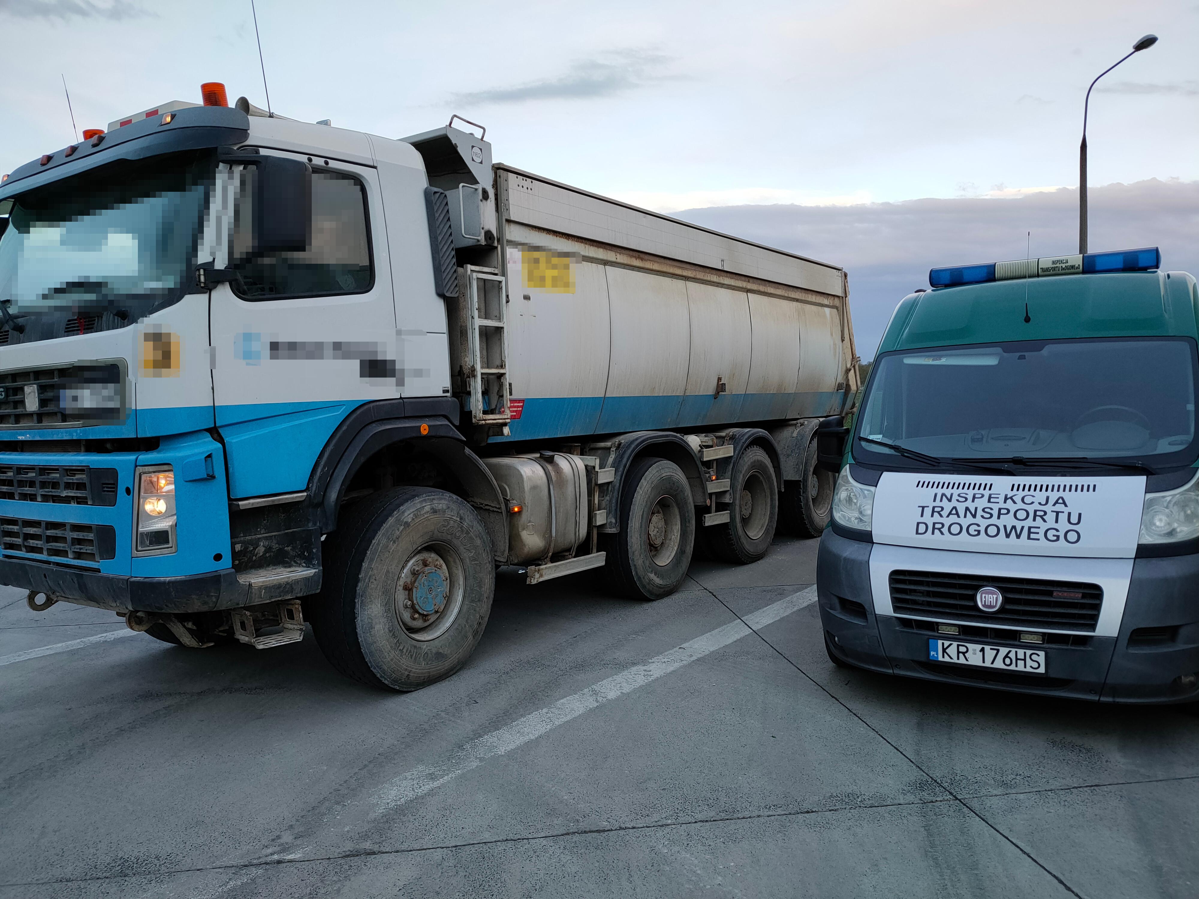 Małopolscy inspektorzy ITD na DK47 w Rdzawce zatrzymali do kontroli 4-osiową wywrotkę należącą do polskiego przewoźnika, którą kierowca przewoził ziemię z budowy nowej "zakopianki". Dopuszczalna masa całkowita ciężarówki (34 tony) przekroczona została o ponad 2 tony, a dopuszczalny nacisk na podwójną oś napędową o 3 tony. Kierujący w chwili zatrzymania jechał bez karty. Kontrola jego czasu pracy wykazała, że w poprzednim dniu też jeździł nie włożywszy karty do tachografu. Nie posiadał przy sobie również żadnych dokumentów przewozowych. Wobec przewoźnika wszczęto postępowanie administracyjne zagrożone karą 15 tys. zł, a kierowcę ukarano mandatem karnym w wysokości 2 tys. zł.