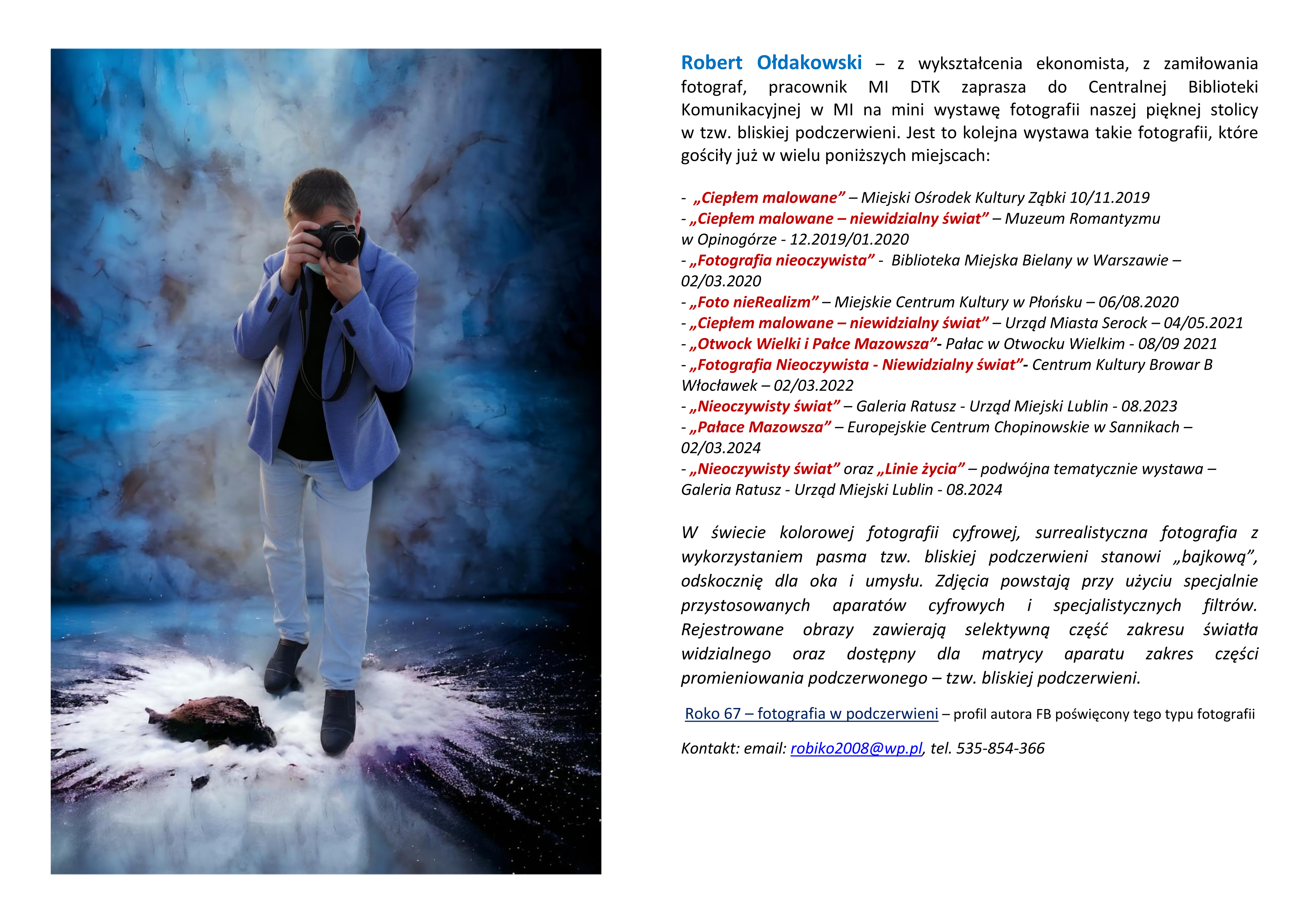 Przez cały luty 2025 zapraszamy na wystawę na wystawę zdjęć pracownika MI - Roberta Ołdakowskiego…