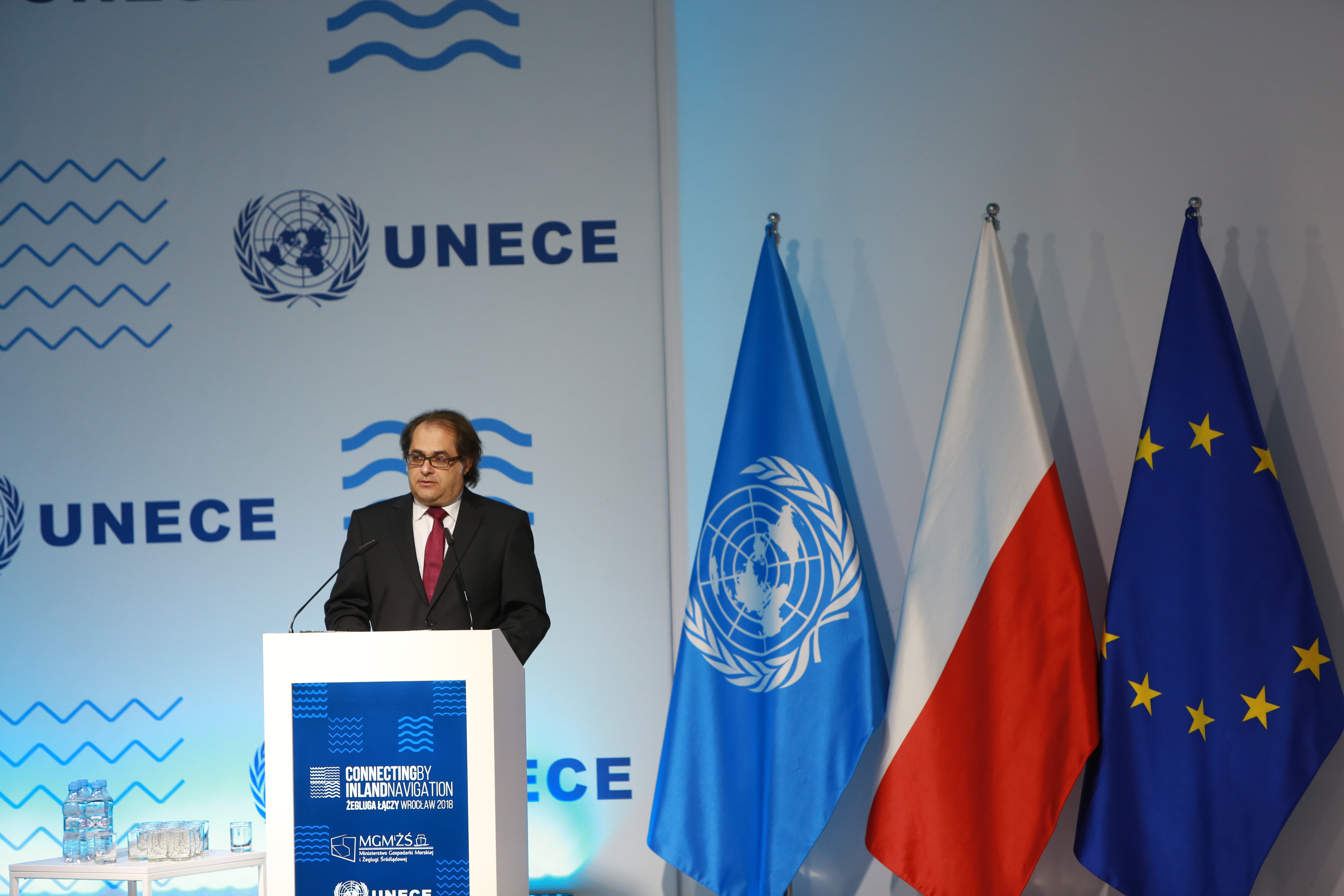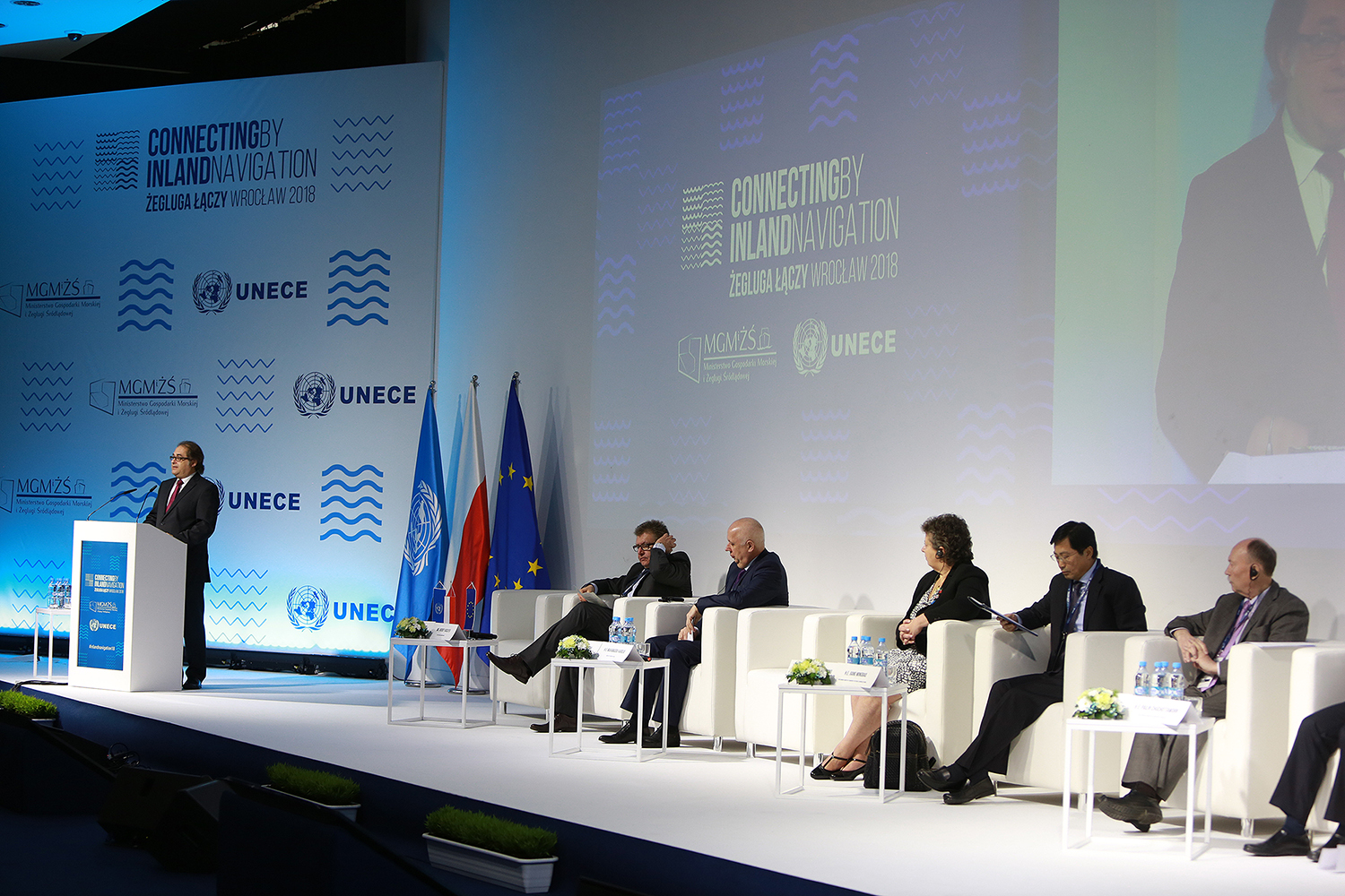 Minister Marek Gróbarczyk w swoim inauguracyjnym przemówieniu przypomniał, że przez Polskę przebiegają aż trzy międzynarodowe drogi wodne: E-30, łącząca Morze Bałtyckie z Dunajem, E-40 łącząca Bałtyk z Morzem Czarnym oraz E-70 łącząca belgijski port Antwerpia z litewskim portem Kłajpeda. – Polska leży w środku Europy, a drogi wodne to arterie łączące zaplecza portów. Priorytetem naszego rządu jest udrożnić te arterie i sprawić, żeby potoki towarów regularnie przepływały przez polskie drogi wodne, tak na Zachód, jak i przez Morze Czarne na Wschód naszego kontynentu – mówił szef MGMiŻŚ.