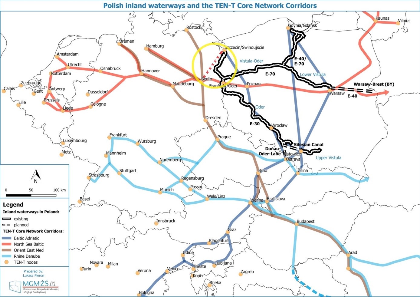 Połączenie wodne śródlądowe Szczecin – Berlin stało się częścią europejskiego korytarza transportowego Morze Północne-Bałtyk. Fakt ten otwiera możliwości ubiegania się o środki z instrumentu „Łącząc Europę” na modernizację Odrzańskiej Drogi Wodnej na jej końcowym fragmencie. Rozpoczął się także przetarg na analizę kosztów i korzyści oraz na strategię komunikacji. Obydwa zadania sfinansuje unijny Program Wsparcia Reform Strukturalnych prowadzony przez Komisję Europejską.
