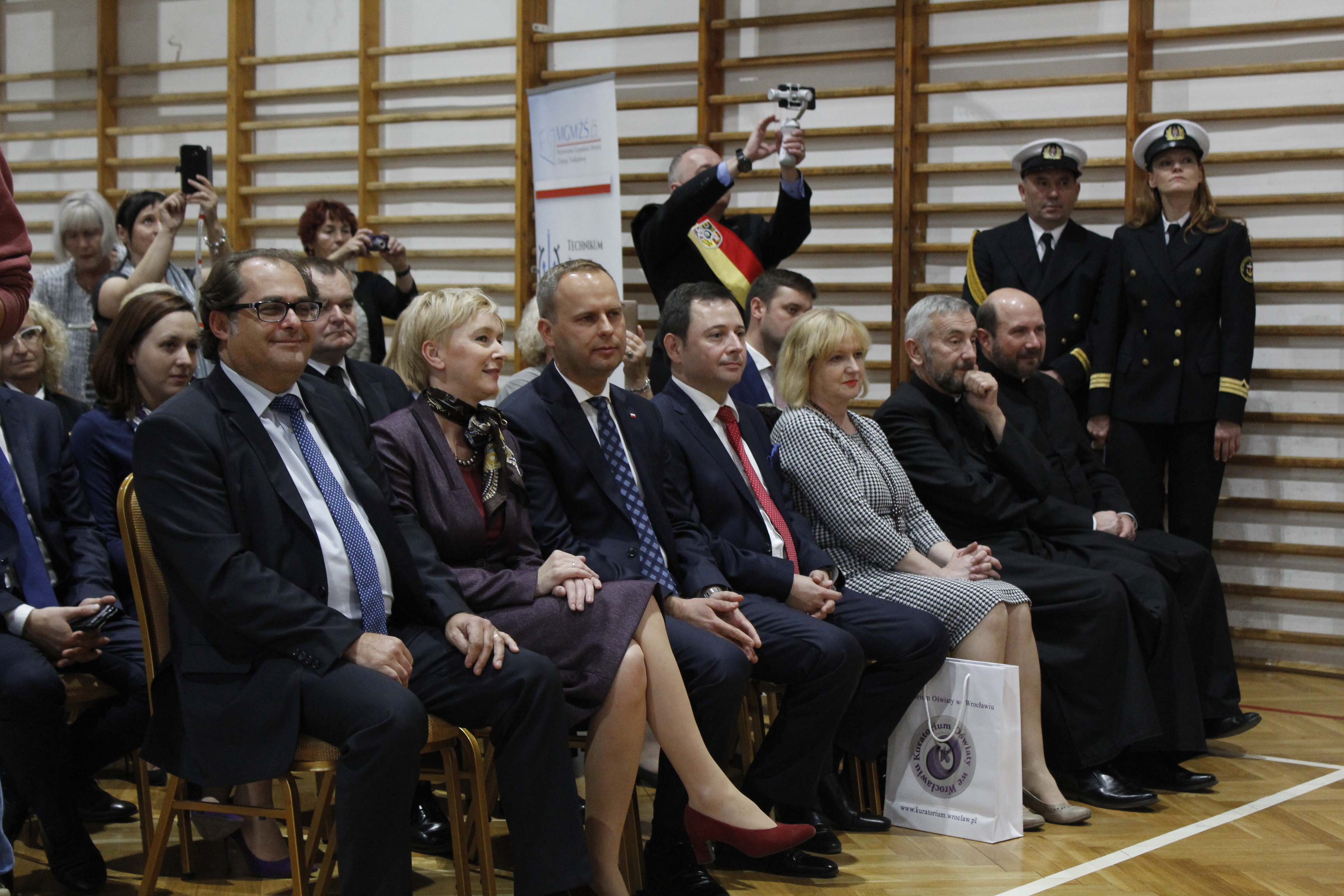 Marek Gróbarczyk minister gospodarki morskiej i żeglugi śródlądowej wziął udział w uroczystości ślubowania uczniów klasy pierwszej Technikum Żeglugi Śródlądowej we Wrocławiu. Podczas ceremonii obecny był również Paweł Hreniak, wojewoda dolnośląski oraz grono absolwentów szkoły.