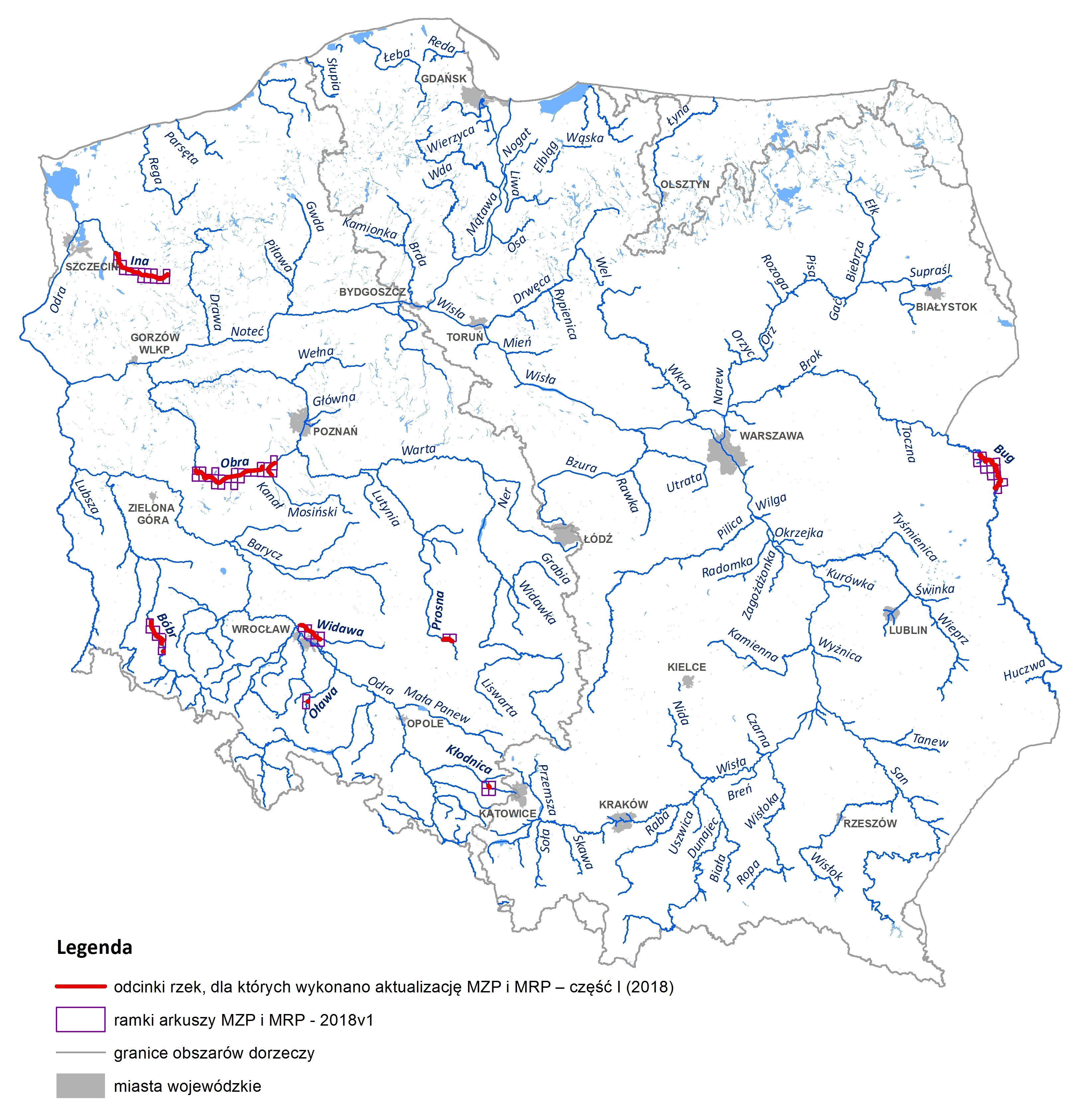 Aktualizacja MZP i MRP została wykonana dla wybranych odcinków rzek na podstawie art. 171 ust. 9 ustawy – Prawo wodne. Zgodnie z powyższym artykułem MZP i MRP mogą zostać poddane przeglądowi oraz w razie potrzeby aktualizacji częściej niż co sześć lat, z tym że w przypadku dokonania takiej aktualizacji należy ją ponowić z zachowaniem zasady wyrażonej w ust. 8, tj. w terminach wynikających z Dyrektywy Powodziowej.